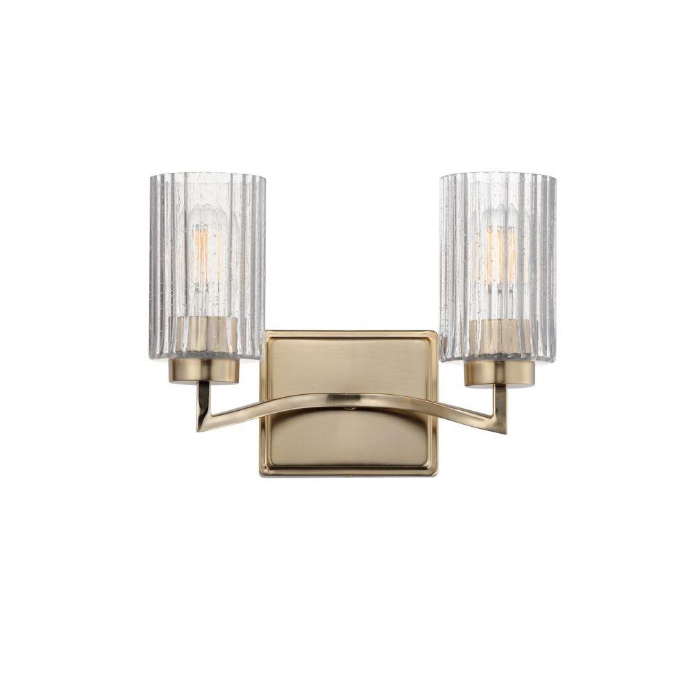 Clear Ribbed glass cylinders are supported on gracefully sweeping frames. The glass pattern helps to diffuse the light source while adding texture and style to the design. Available in Polished Nickel, Satin Champagne, or Matte Black.