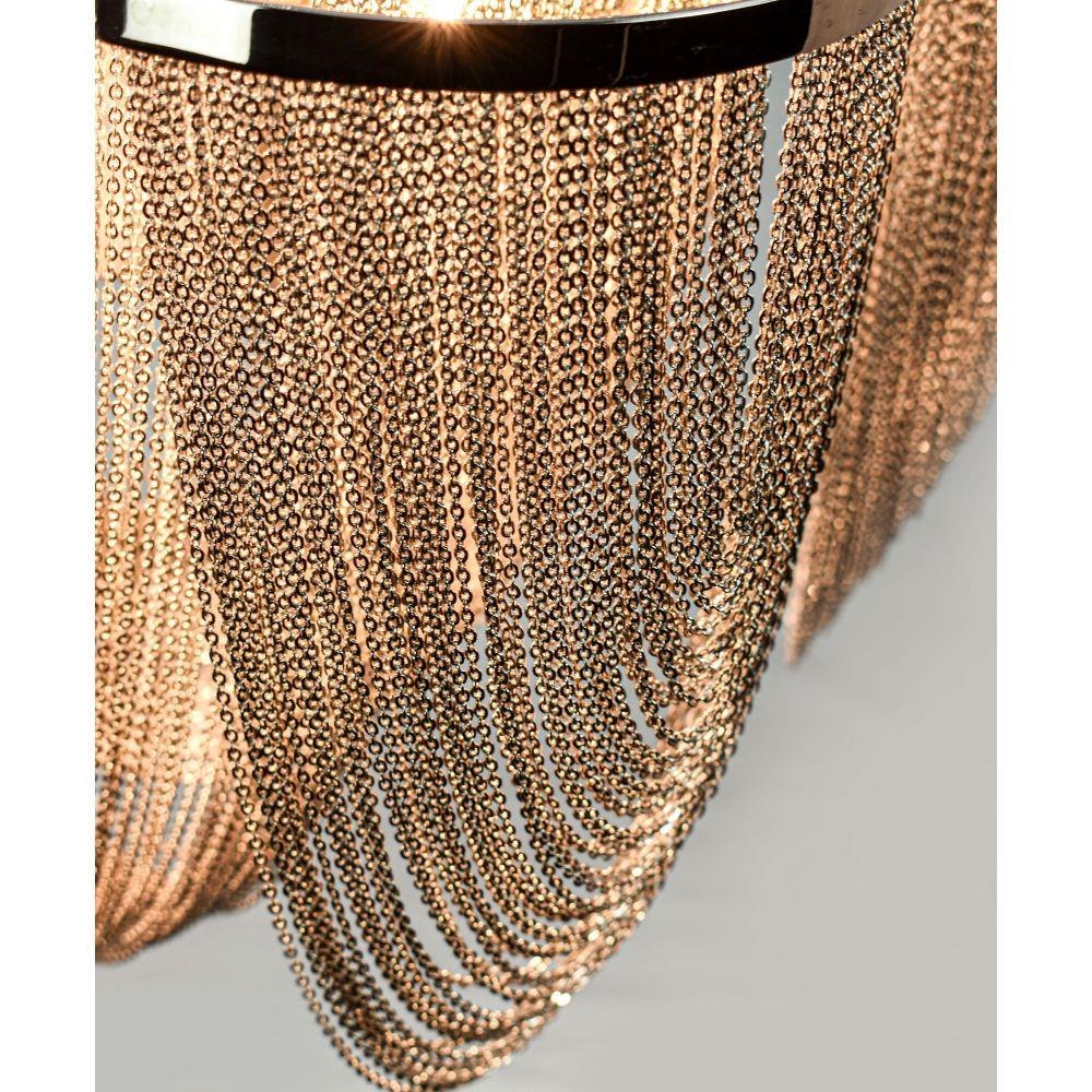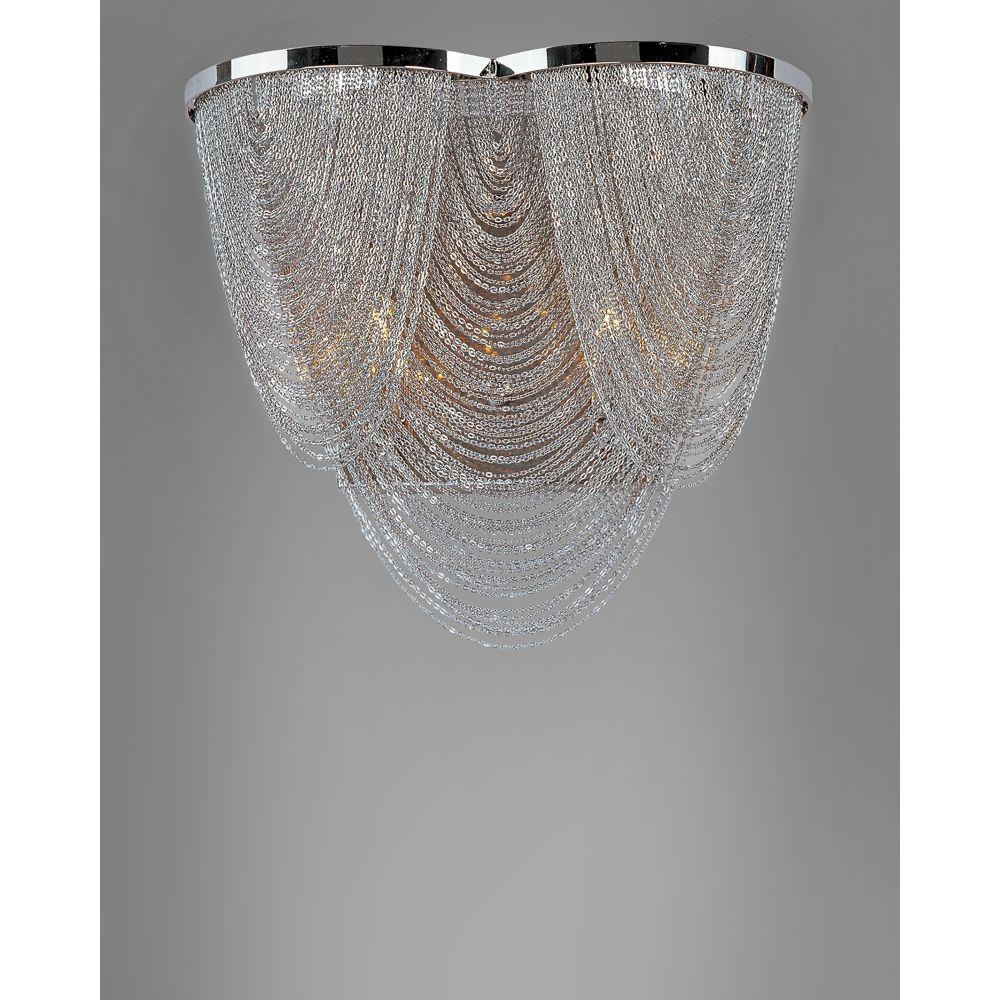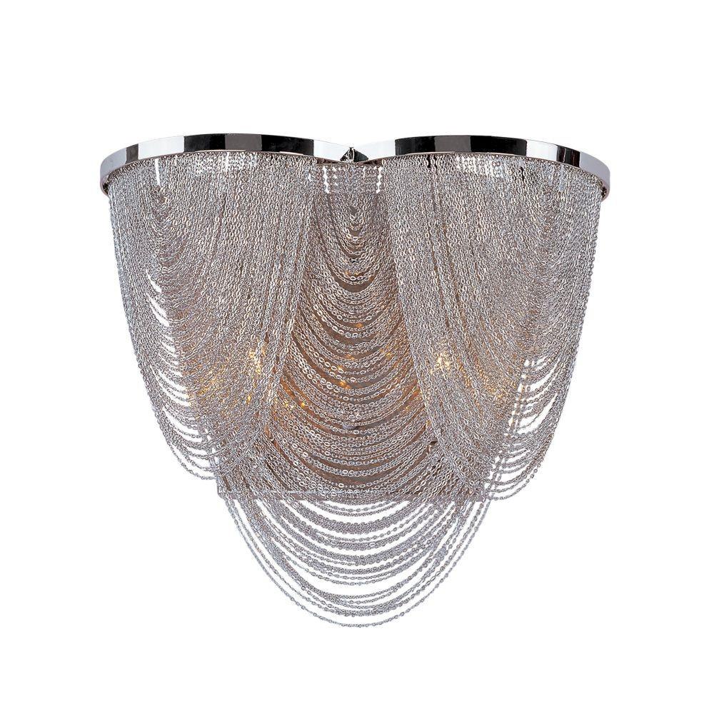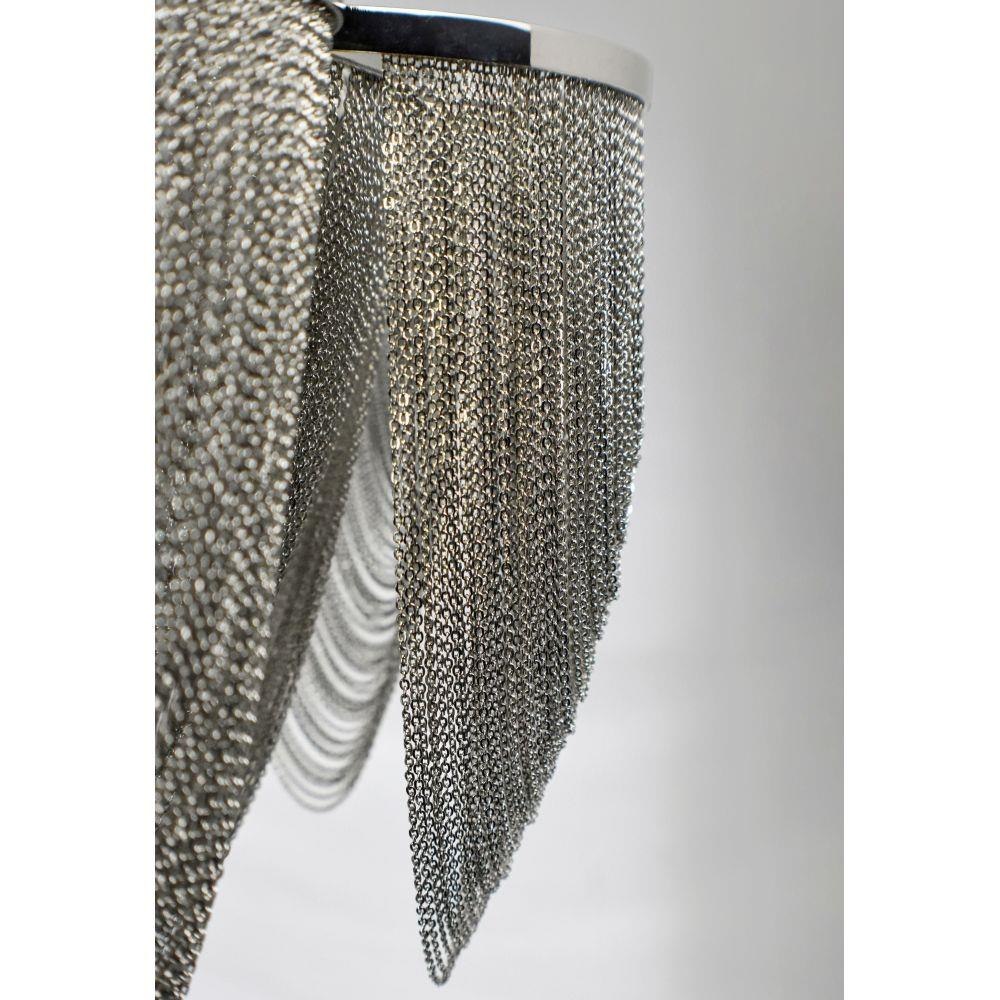 Chantilly collection features metal frames gracefully draped with Nickel finished jewelry chain. Metal trim rings of Polished Nickel add sharp contrast to the softness of the chain, which conceals the xenon light source.