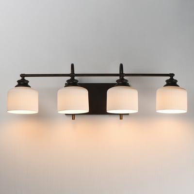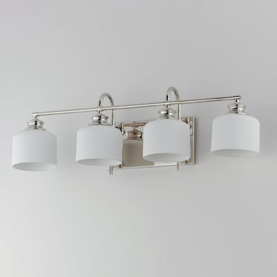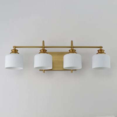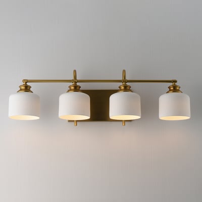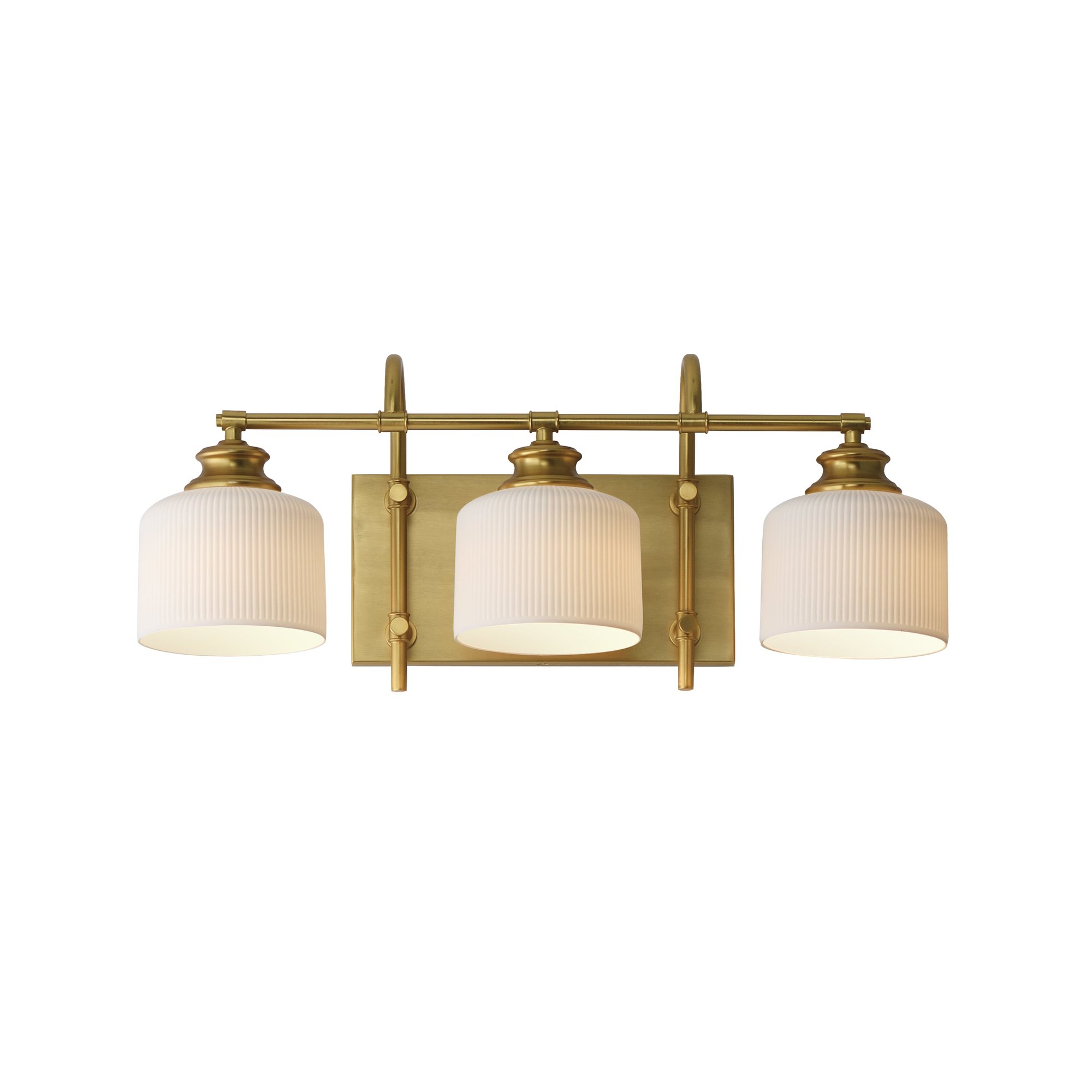 The Bisque Vanity Light elegantly combines modern design with timeless appeal. Featuring ribbed ceramic shades suspended on gracefully arching frames, this fixture enhances any space while providing soft, diffused lighting.