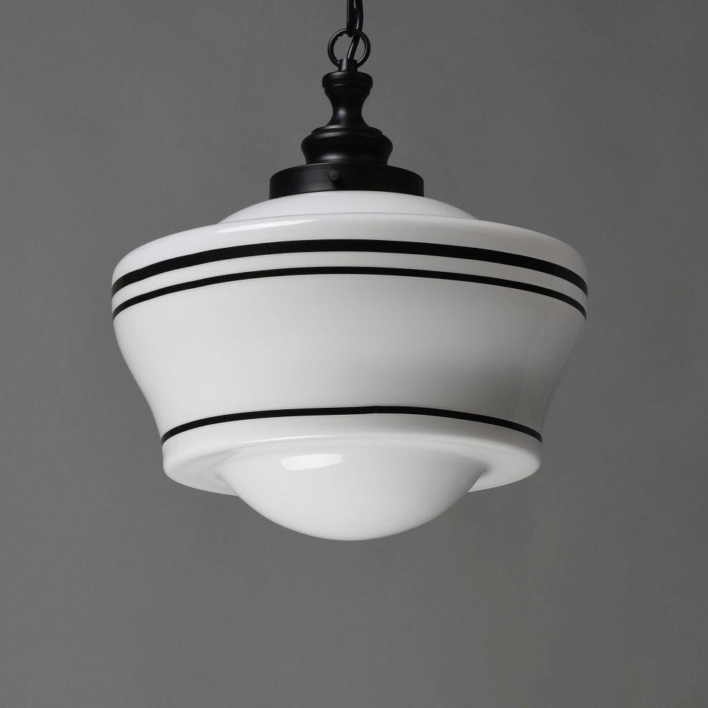 A refreshed take on classic schoolhouse glass pendants, this collection combines nostalgia with modern flair. The opal white glass shades feature repeating black stripes for a contemporary twist, while Matte Black tops and streamlined down rods add a clean, modern touch. Available in multiple sizes, the collection also includes a coordinating wall sconce for a cohesive look.