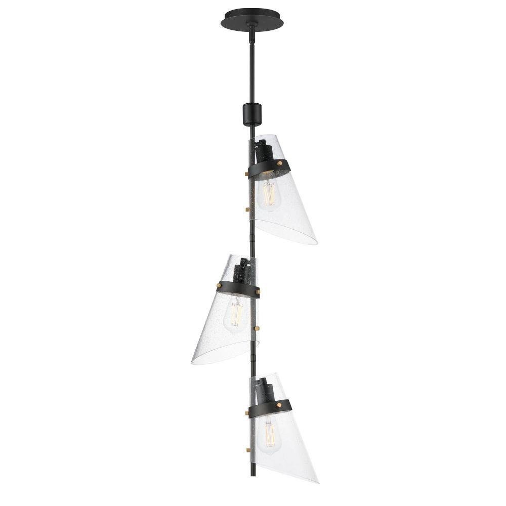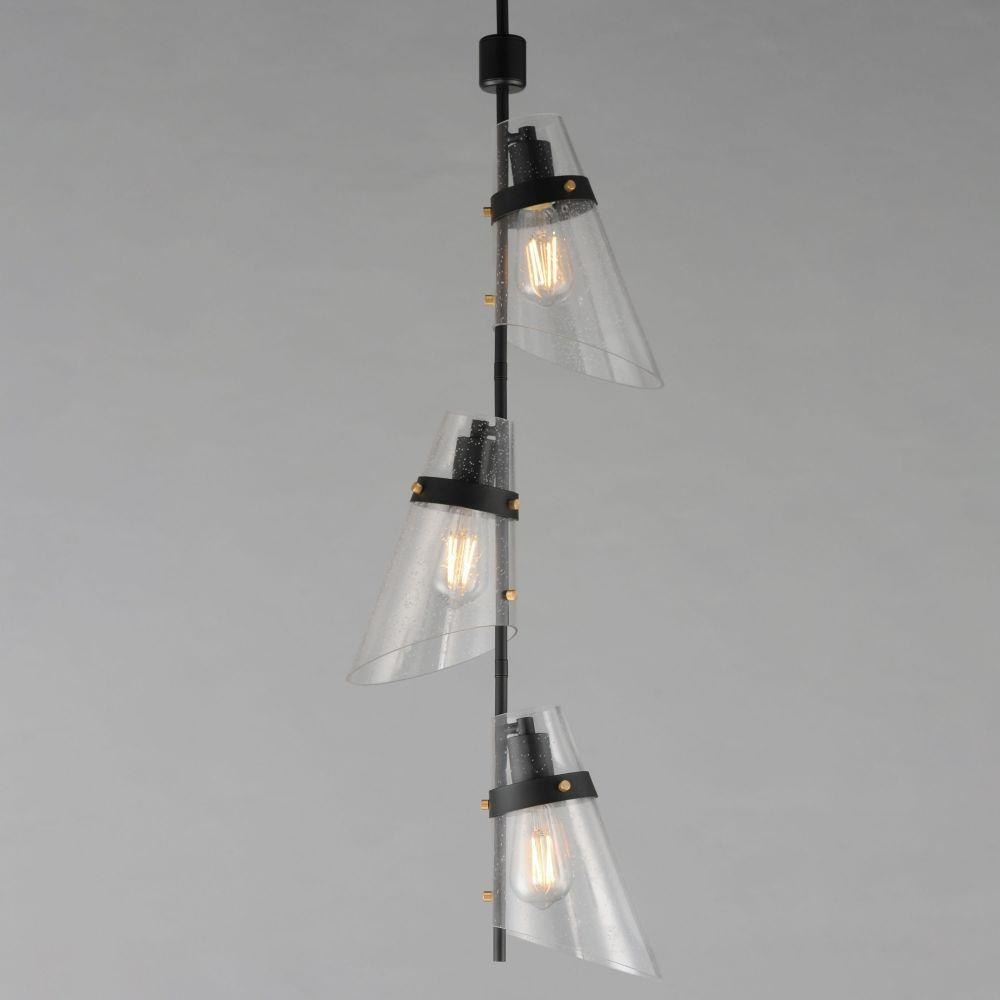 Architectural and effortlessly striking, the Finch collection reimagines classic forms through a modern lens. Tapered cones of clear seedy glass are precision-cut on a diagonal slant, creating dynamic lines that shift with perspective. The Dark Bronze framework is accented with subtle Antique Brass fasteners, grounding the design with a warm, tailored contrast. Whether styled as a wall sconce, linear pendant, or cascading drop fixture, Finch brings visual movement and sculptural presence to transitional and contemporary spaces alike.