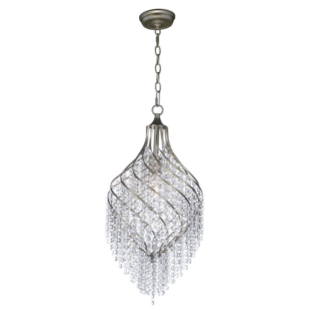 Spiraling metal frames are draped with strands of crystal creating pendants of style and movement. Available in your choice of Oil Rubbed Bronze with Cognac crystal or Gold Silver with Beveled Crystal, these beautiful pendants are available at very attractive price.