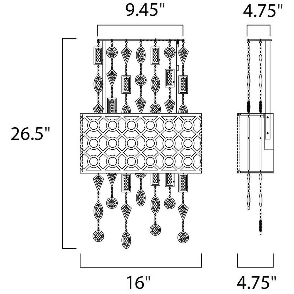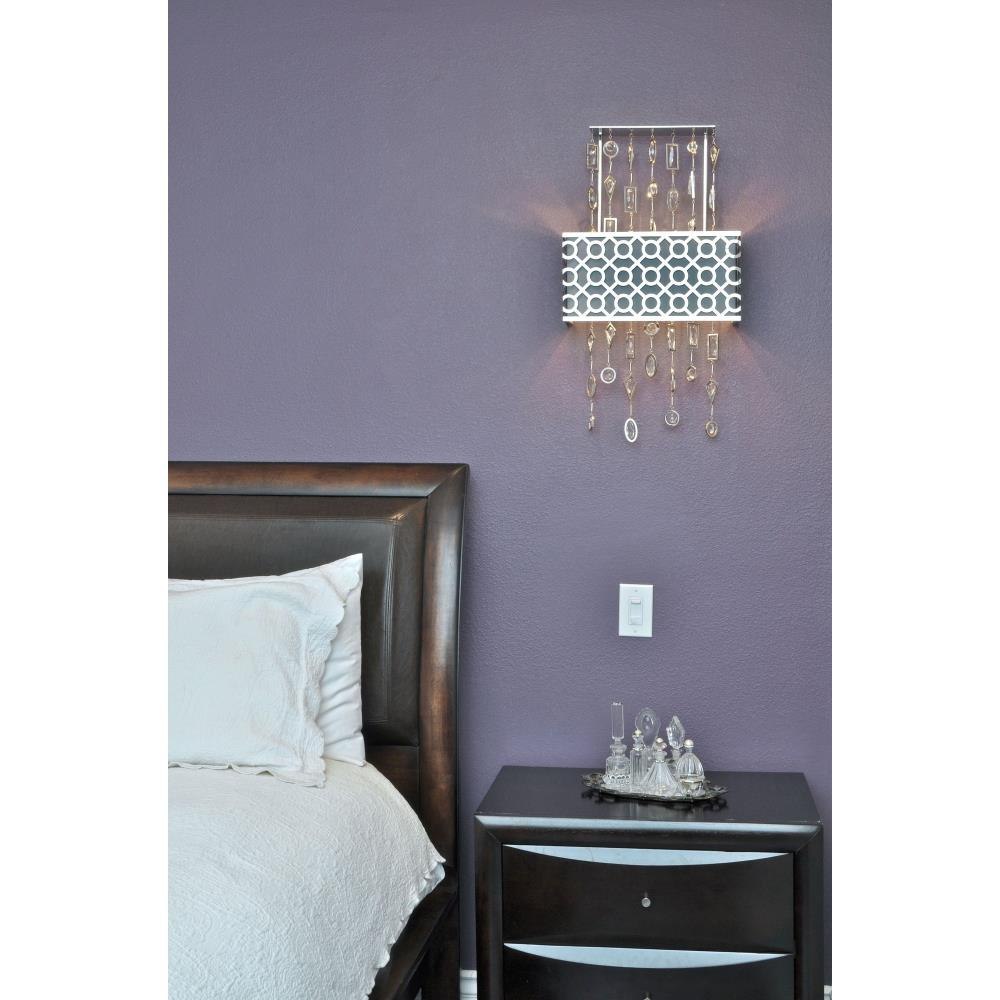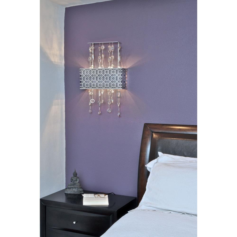 A geometric pattern in a frame of Stainless Steel finished in Polished Nickel is contrasted by an inner Slate fabric shade. Geometric shaped cast Wall Light frame custom-made crystals, adding brilliant accents throughout the fixture.