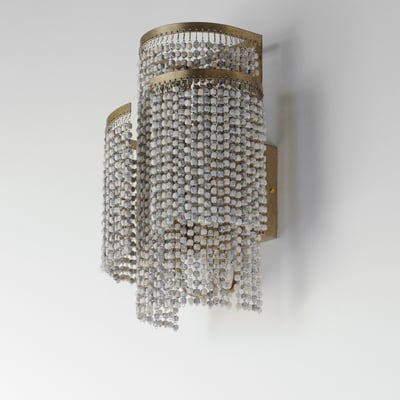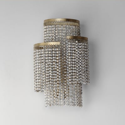 The Fontaine Wall Sconce enhances any room with its elegant design and warm illumination. Featuring cascading strands of weathered wood beads on a spiraling frame, this sconce adds a touch of sophistication and charm.