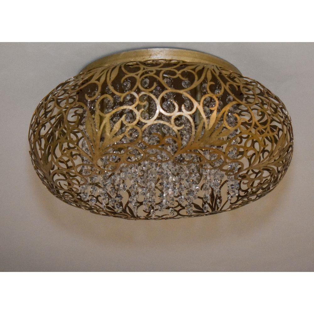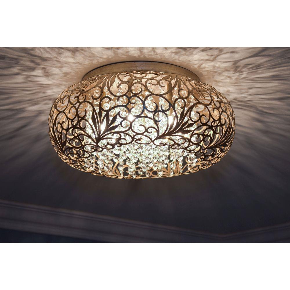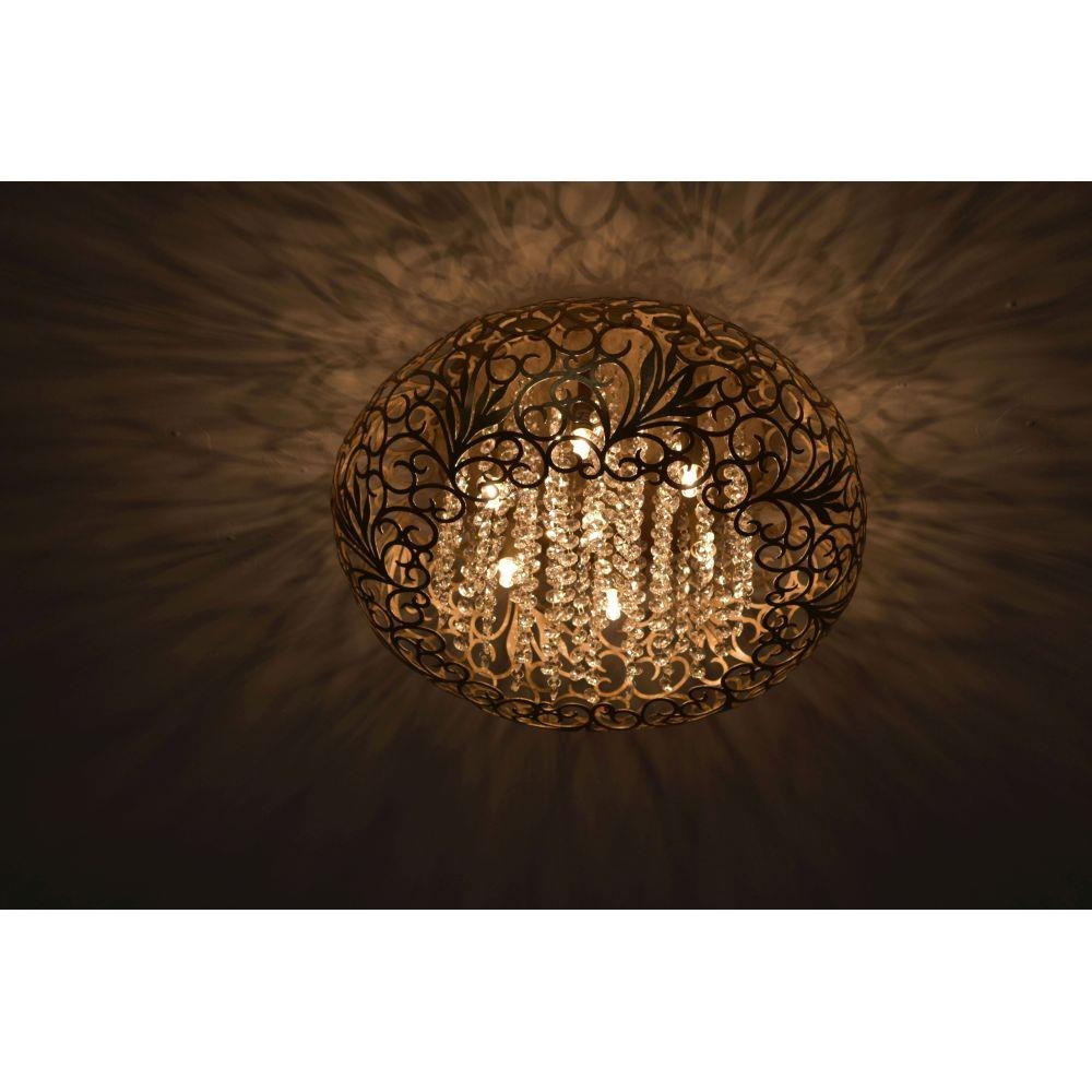 The Arabesque collection's intricate patterns are formed in metal and finished in Golden Silver.Strands of crystal beads add sparkle as they shimmer through the Xenon lamps. Unique oval-shaped pendants add a touch of class to any room.