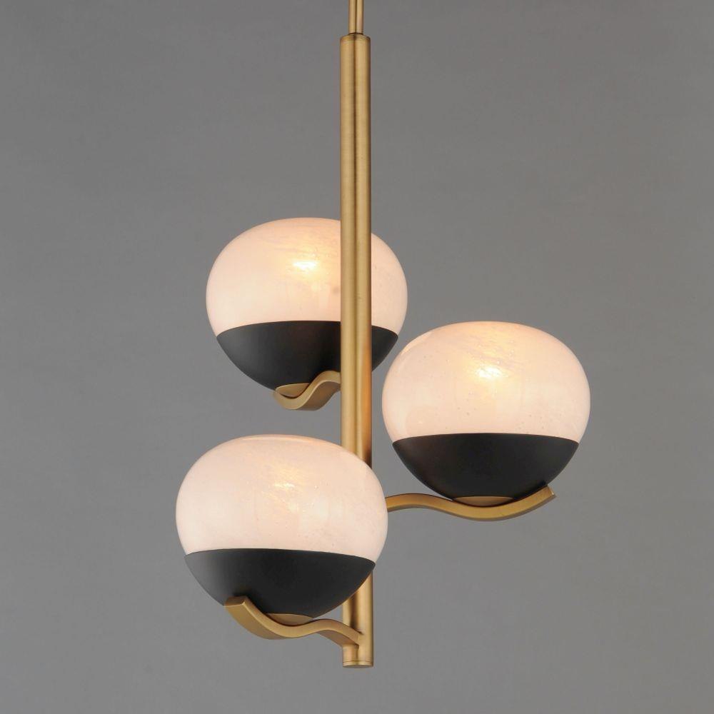 Notably stylish and unique, the Lucerne collection features oblong glossy glass globes with a swirling Marble pattern that exudes sophistication. The distinctive rectangular arms gracefully curve downward, seamlessly blending robust metal fabrication with precision and fluid elegance. Contrasting Black and Natural Aged Brass finishes accentuate the bobeches, adding depth and visual intrigue. Offering versatile installation options, the chandelier can be suspended by a sleek stem or the chain included for various height adjustment.
