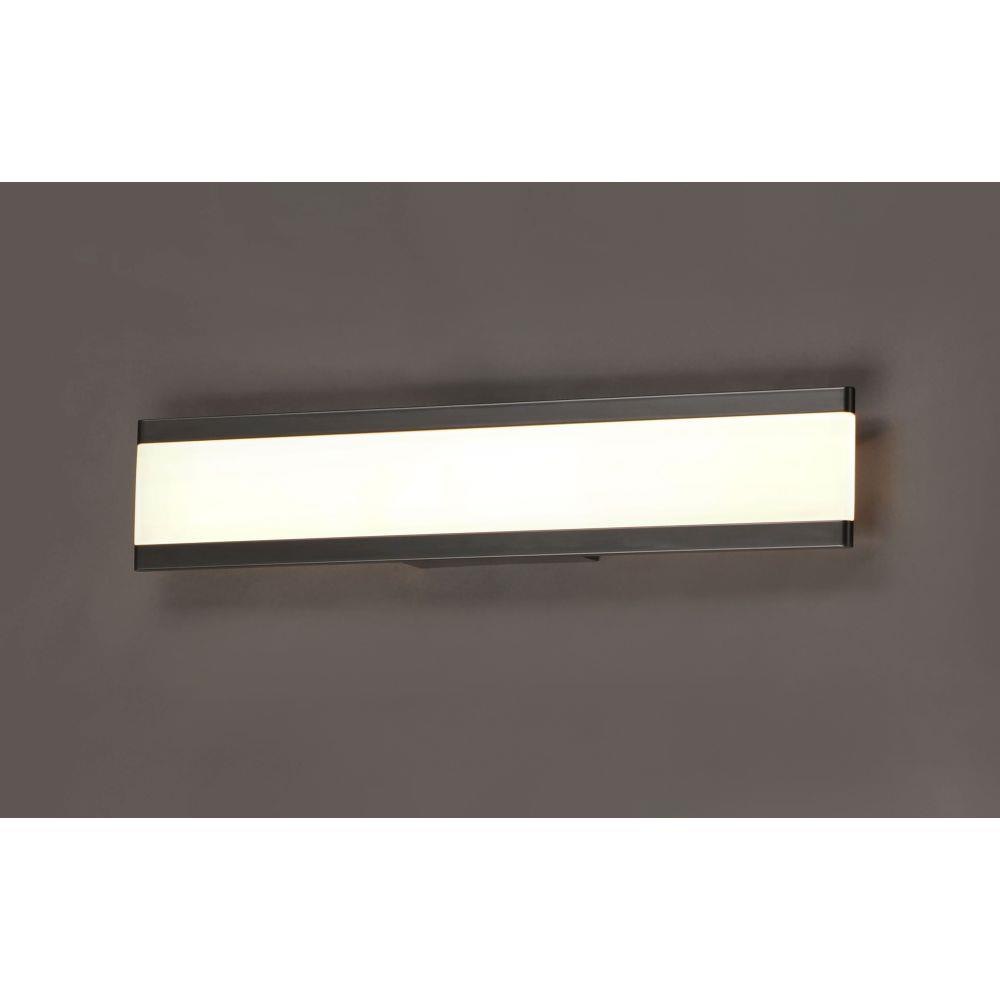 Dual Black aluminum channels support a Frost acrylic diffuser that projects light into the room when illuminated. Available in 4 lengths, this collection can be installed horizontal above the mirror or vertical on each side.