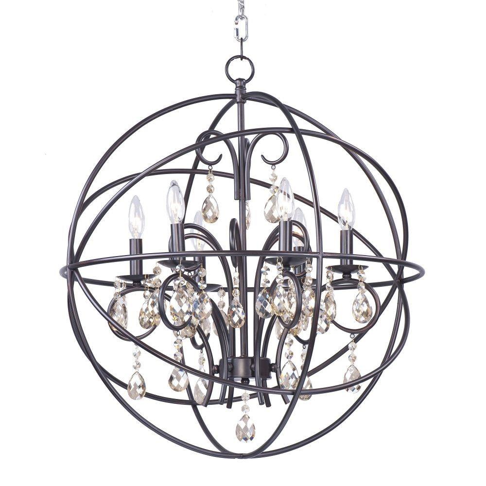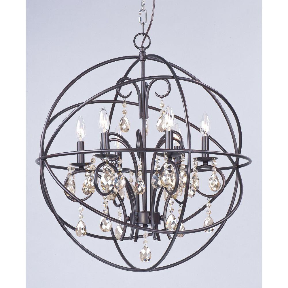 A spherical frame of metal surround a simple line chandelier draped in crystal for a transitional style that fits any interior design. Orbit is available in 2 sizes and 2 finishes, Oil Rubbed Bronze with Cognac crystal and a combo finish of Anthracite and Polished Nickel with Clear crystal.