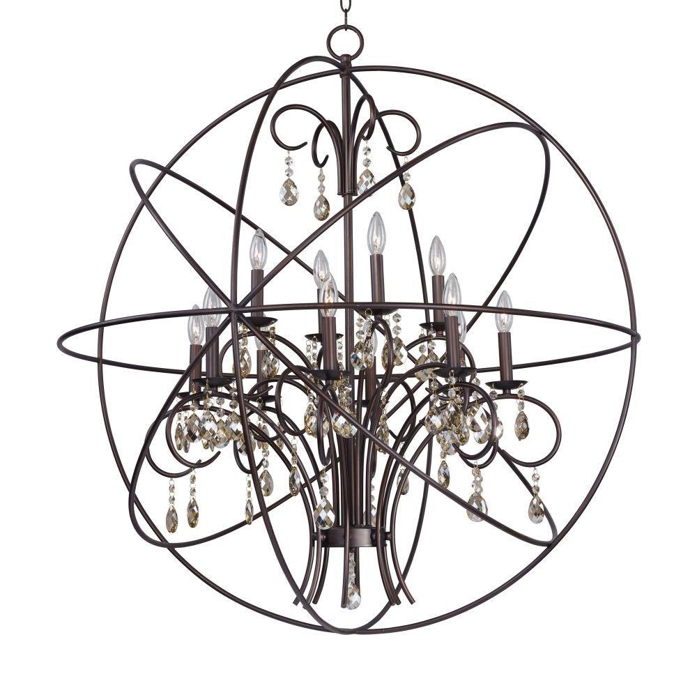 A spherical frame of metal surround a simple line chandelier draped in crystal for a transitional style that fits any interior design. Orbit is available in 2 sizes and 2 finishes, Oil Rubbed Bronze with Cognac crystal and a combo finish of Anthracite and Polished Nickel with Clear crystal.