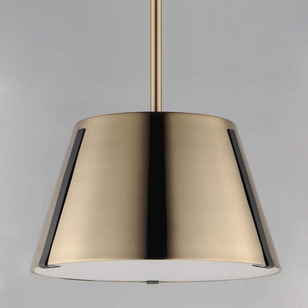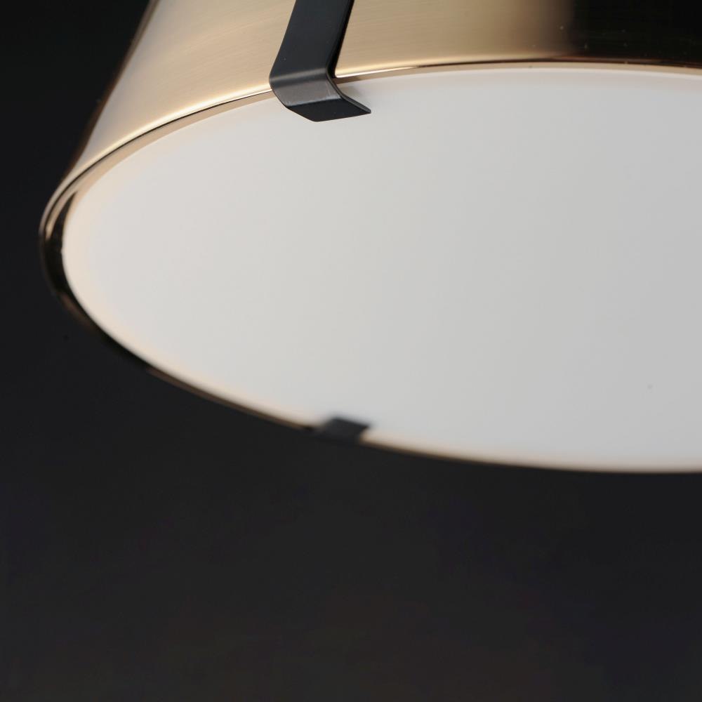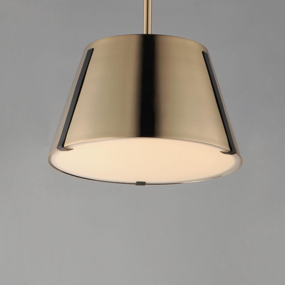 Metal shades finished in a warm Heritage Brass are accented with Dark Bronze metal straps and Tobacco Brown leather wrapped details. Recessed within the metal shades, a frosted glass diffuser softly casts the LED light source within. Paddles on every shade allow the light to easily be directed upward or downwards. With the accompanying wall sconce in the collection, a touch switch is located on its top and the convenient paddle at its end allows you to direct the light source where needed. Tasteful and timeless, the reimagined classic metal drum shades are elevated with technology and convenient features. Perfect for entries, eating areas, and bedside applications.