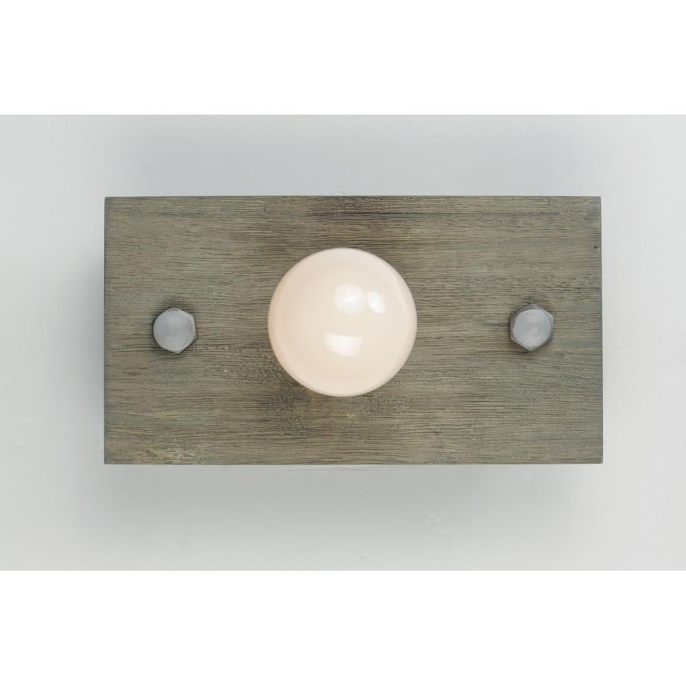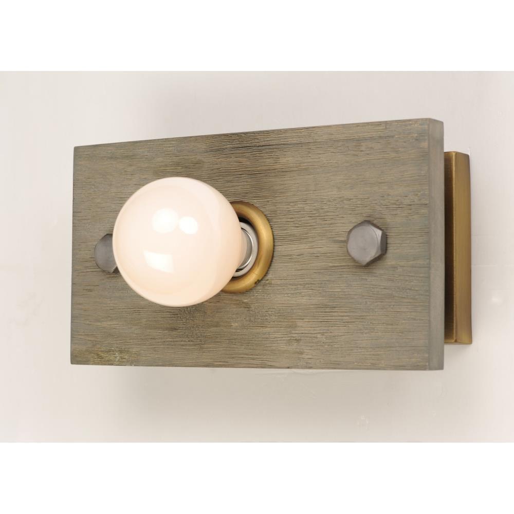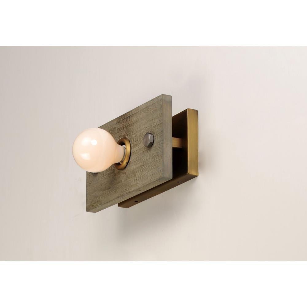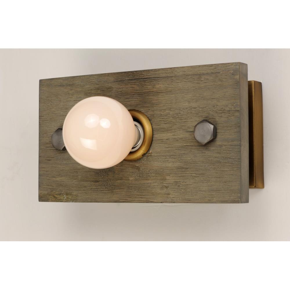 Planks of natural wood are distressed by hand and finished in Weathered Wood with Antique Brass accents, to create a rustic reclaimed look. Lacquered raw metal hex nuts provide an additional decorative element. The overall design can be changed by your choice of bulb which makes the collection very versatile.