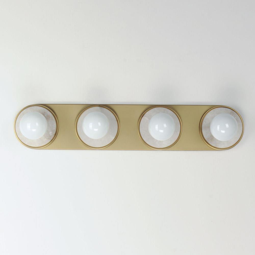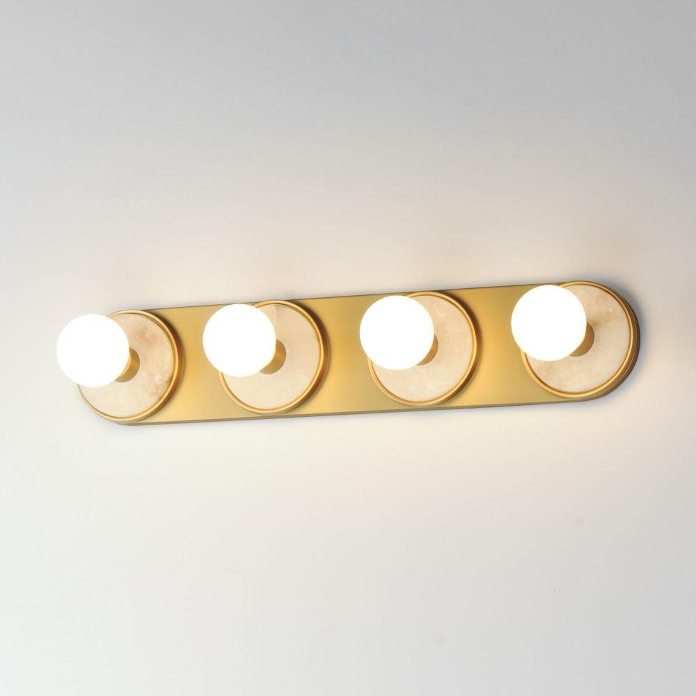 Get ready for your closeup. This collection of streamlined vanity lights are available in glamorous two tone finishes. Select from Natural Aged Brass with Matte Black or Spanish Alabaster plates. Globes of LED G25 lamps are included with the fixture.