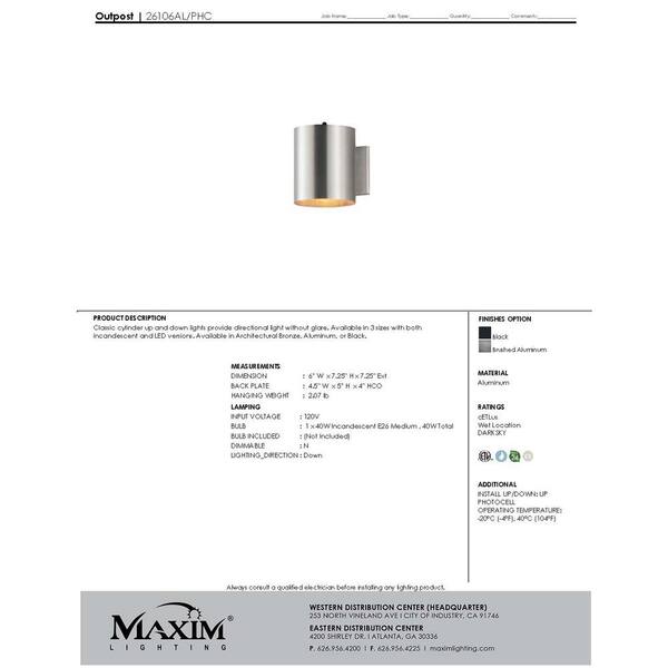 6 in. W x 7.25 in. H Outpost 1-Light OD Wall Sconce with PHC
