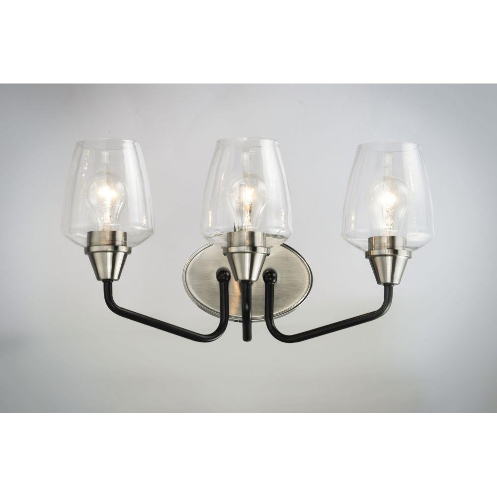 Simple yet elegant frames are finished in two tone finishes to add upscale element to this economical collection. Frames are available in either Bronze with Antique Brass accents or Black with Satin Nickel accents. Both are supplied with Clear glass shades inspired by stemware for a tailored profile.