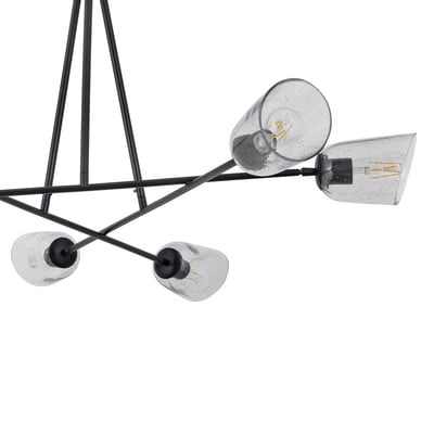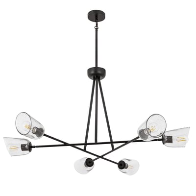 The Keppe 6-Light Chandelier elevates modern industrial design with its striking blown glass shades featuring a unique bubble pattern. This versatile fixture enhances any room while providing adjustable lighting options for optimal functionality.