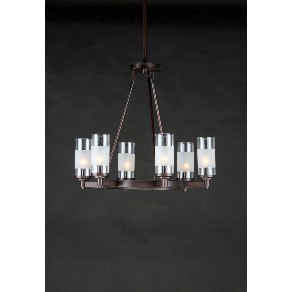 The ring fixture has become a staple in today's interior decor. This collection features a transitional design which works in both Contemporary and Traditional applications. Available in Satin Nickel or Oil Rubbed Bronze, the rings radiate elongated cast arms that cradle cylindrical Clear glass shades with a Frosted band to eliminate glare.