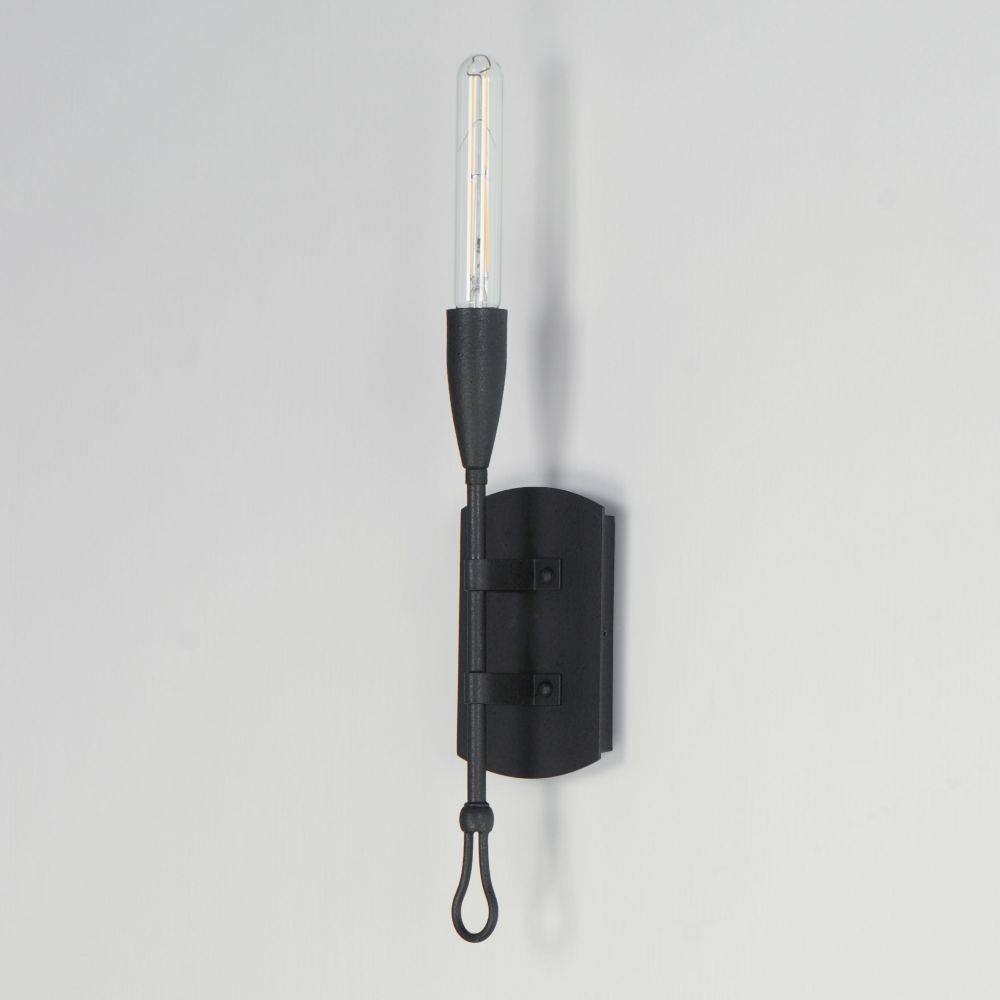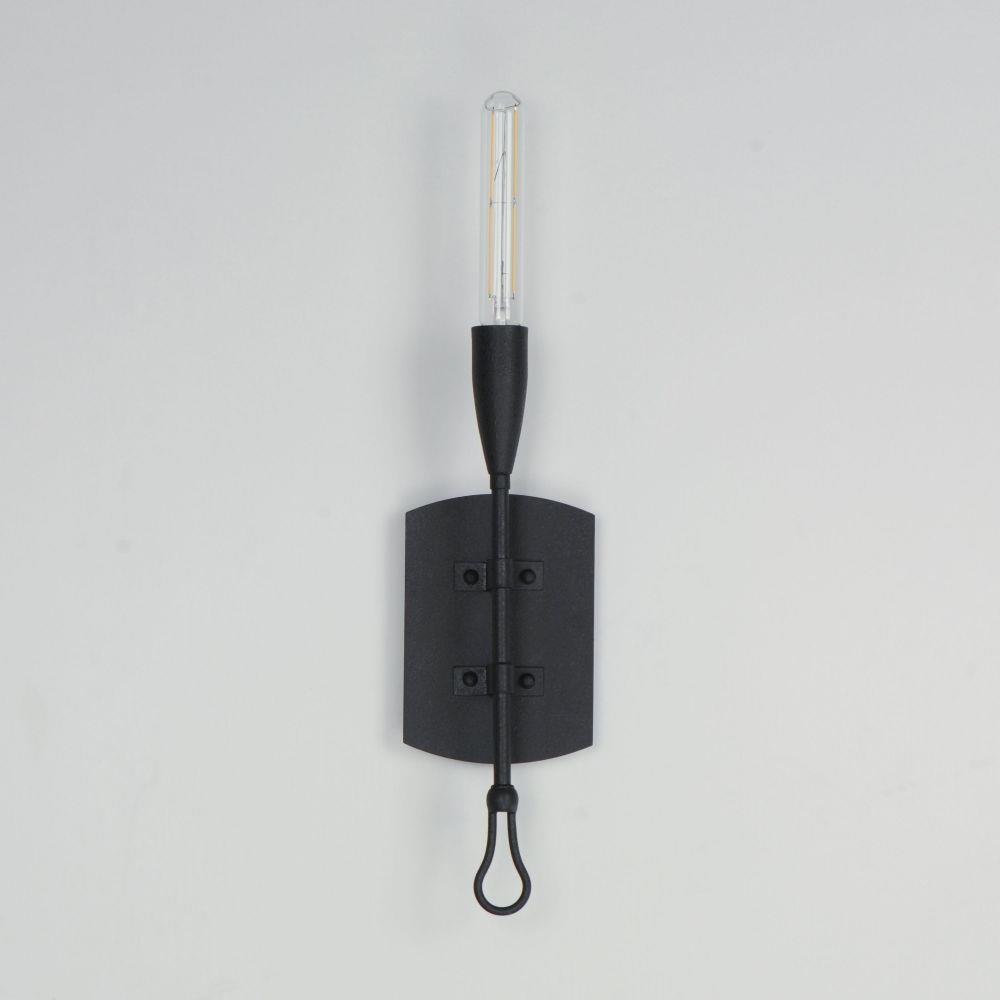 Simple and rustic, elongated metal rods are tiered with forged iron hook and loop details and in multiple configurations. The fixtures are finished in a textured Anthracite finish that adds to the forged iron craftsmanship. Available in multi-pendant configurations as well as a single pendant and sconce. Use tubular filament lamps to accentuate the verticality of the design.