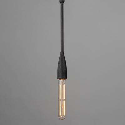 The Pioneer Pendant enhances any space with its rustic charm and modern design. Crafted from durable steel, this fixture features elongated metal rods and unique forged iron hook details, making it a striking addition to various room settings.