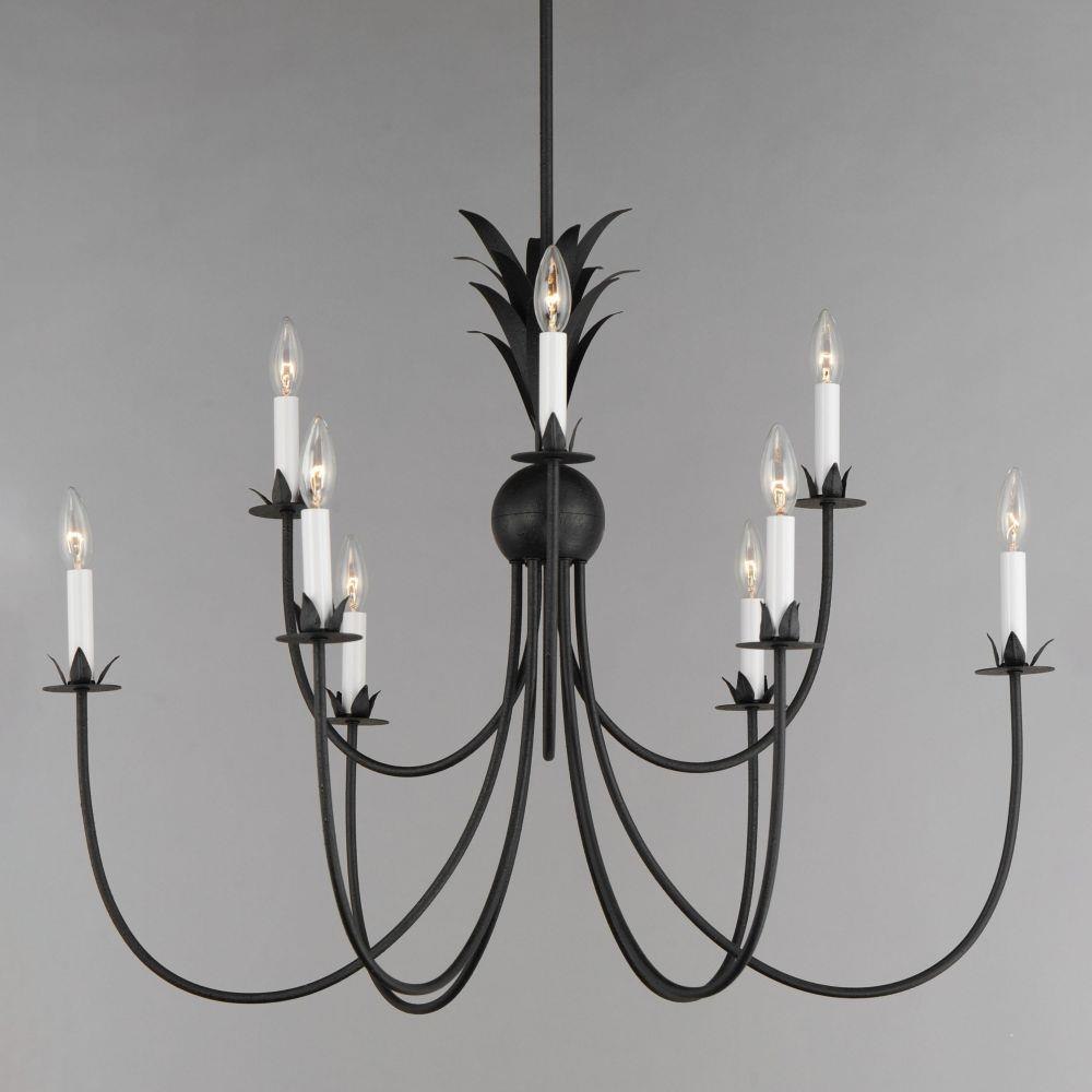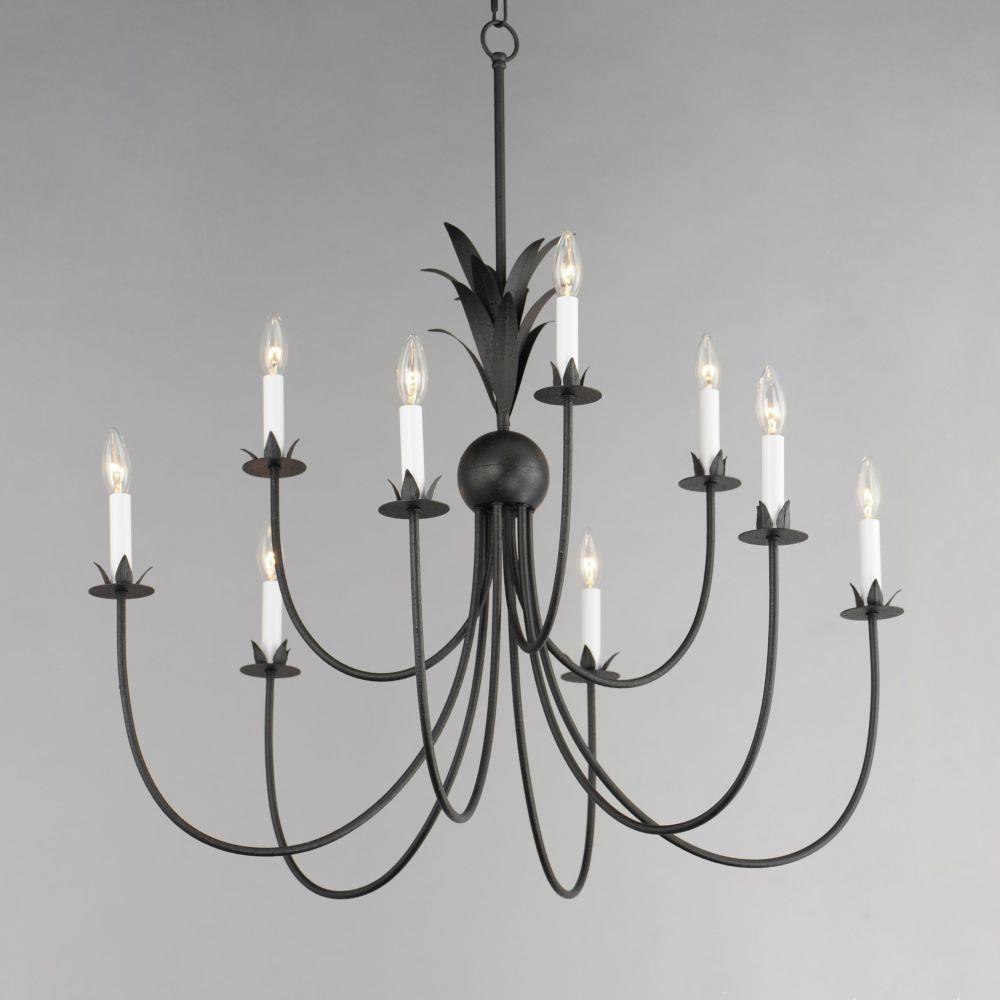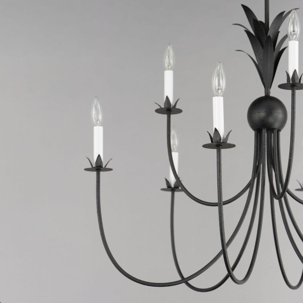 Effortlessly elegant, the biophilic details that adorn this classic chandelier transports you to an oasis indoors. The design, whether brilliantly gilt in Gold Leaf or hand painted in a dramatically textural Anthracite finish, exudes a timeless quality that is sure to please. The graceful form of these fixtures is constructed of slender metal tubes that sprout from a spherical collector at the center and Off-White metal candle covers that are designed to last.