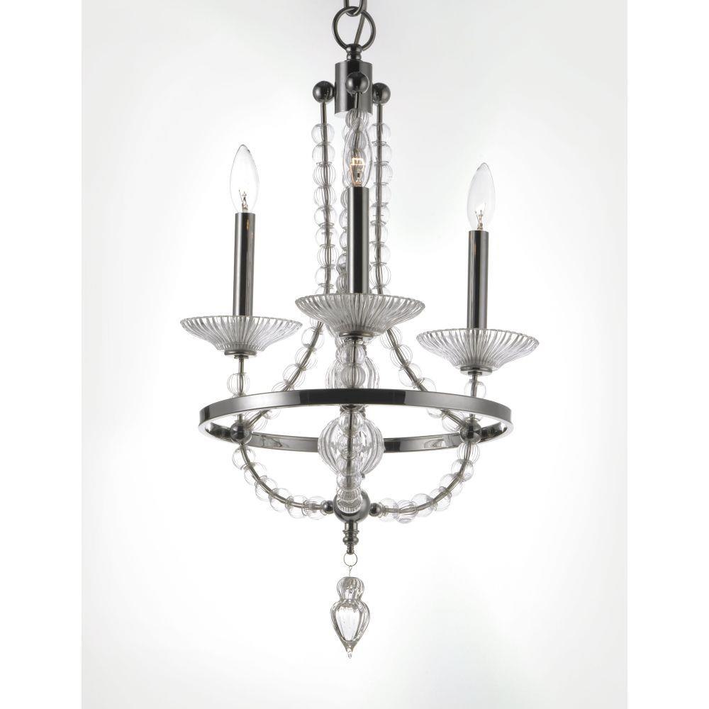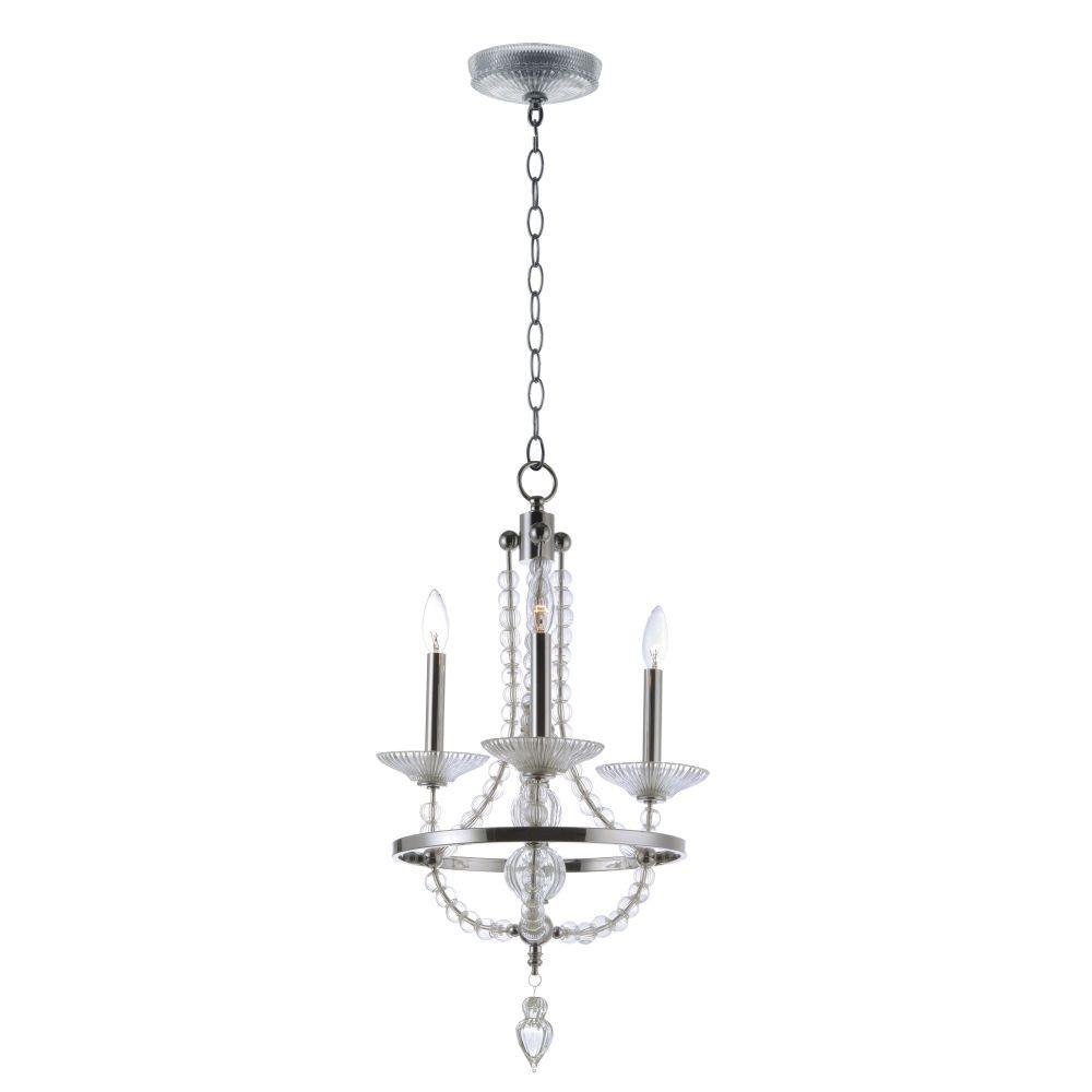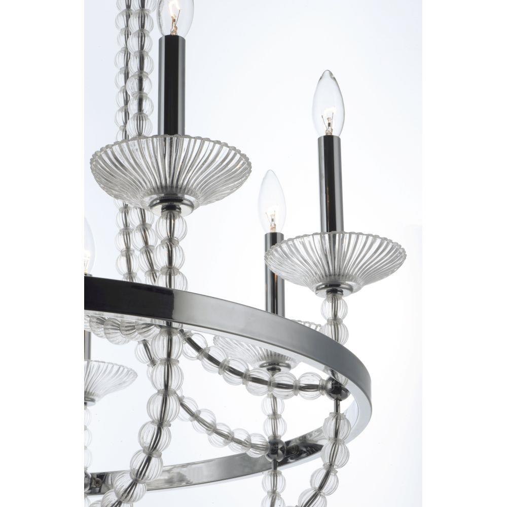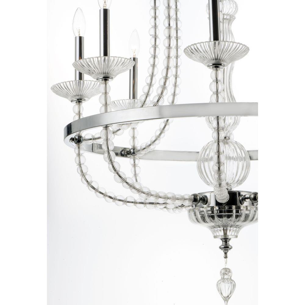 This classic chandelier features frames of Polished Nickel adorned with hundreds of hand blown Clear glass balls and fonts. The ribbed design in the glass adds texture and shimmer to this classic and delicate design.