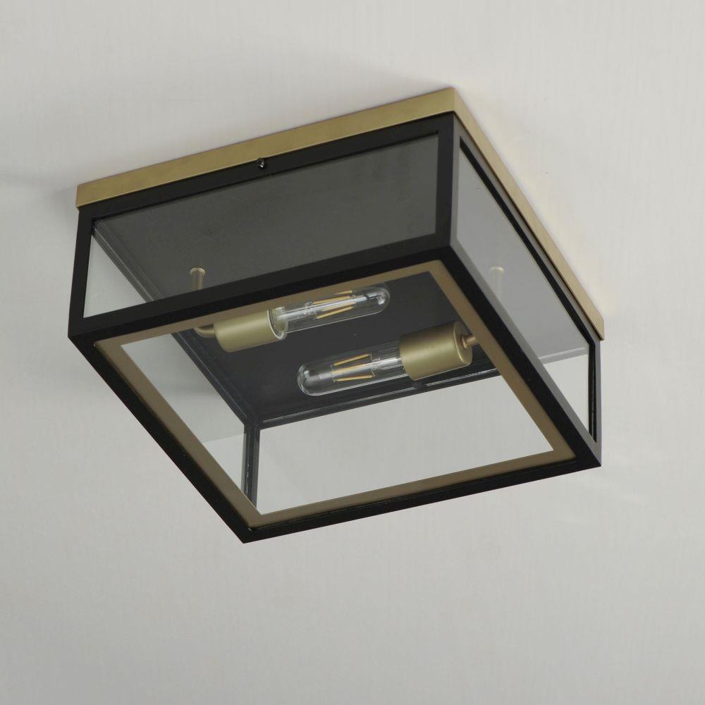 Two tone frames of Black or White with internal Gold frames provides a neoclassical approach to the squared coach lantern. The sconces jut out from the wall on well-defined trusses that add a contemporary element. Delivering classic design that suits most exteriors, this collection adds interest in the interior contrasting frame of Gold that secures clear glass panes to diffuse the lamp within.