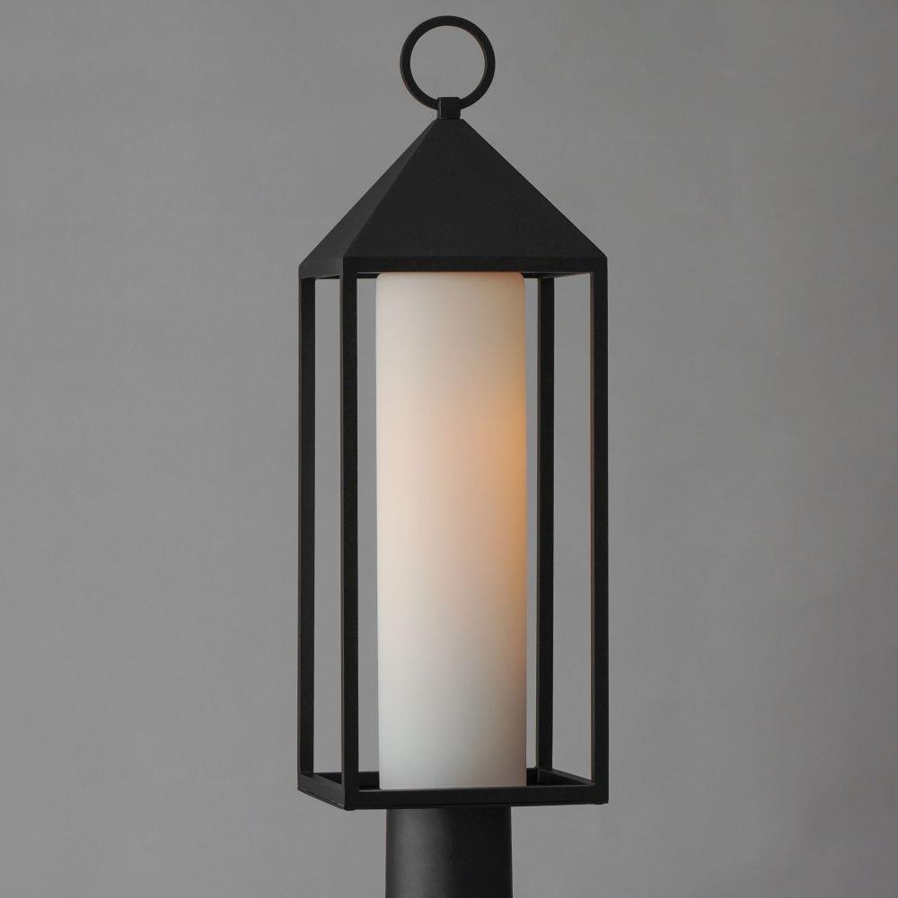 A refreshing take on classic outdoor lanters, this collection features a pyramid capped top with Satin White glass hurricanes housed within. No additional panels of glass are used to frame the lantern, providing an attractive, low maintenance look for outdoors.
