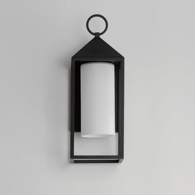 The Aldous Outdoor Wall Sconce enhances your exterior spaces with a modern twist on traditional lantern design. Featuring a sleek pyramid-capped top and Satin White glass, this fixture combines aesthetic appeal with practicality.
