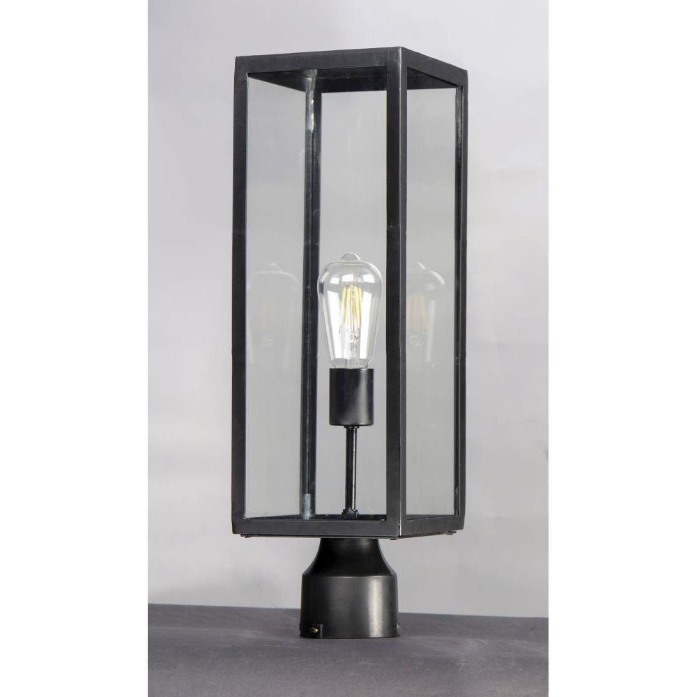 An elongated rectangular shaped design that is both minimalist and industrial. Die cast frames of Dark Bronze support Clear glass panels that provide an unobstructed view of the lantern's interior. Customize with your choice of lamps from vintage to tubular.