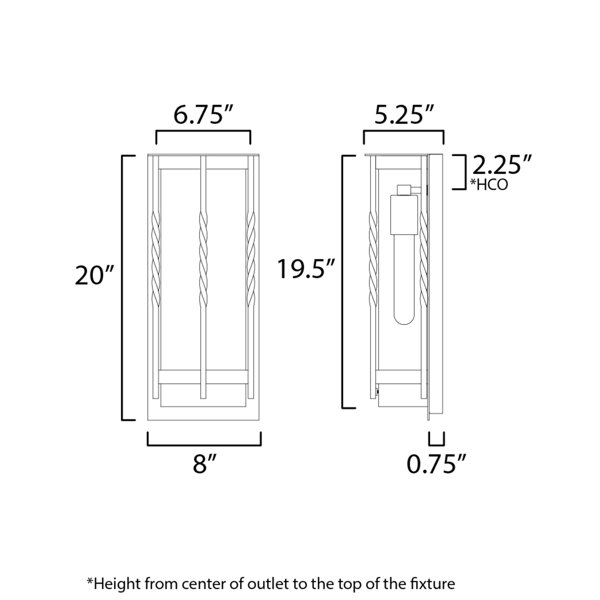 20" H x 8" W x 5.25" D