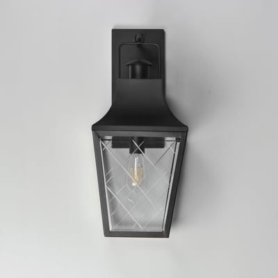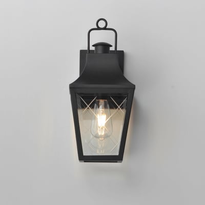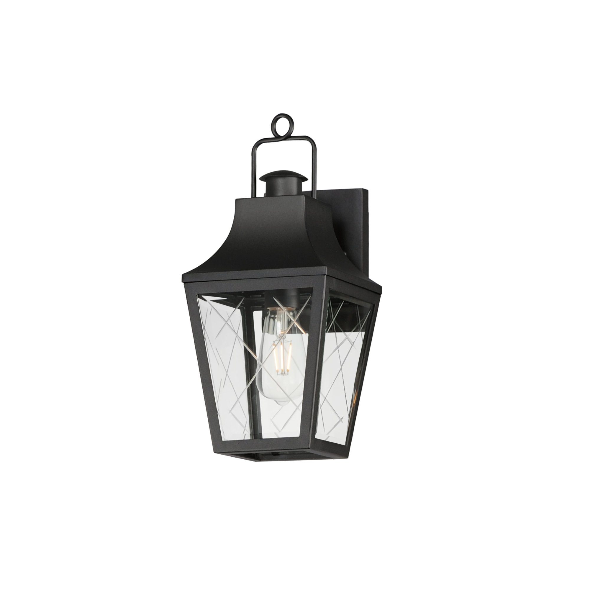The Storybook Outdoor Wall Sconce enhances your outdoor spaces with its charming cottage-style design. Featuring unique cross-etched glass panels and whimsical loops, this lantern-style fixture brings a delightful touch to any exterior.