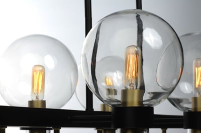 • Striking Details: Arms terminate at rings that support Clear heavy blown glass shades, adding a touch of elegance and sophistication.