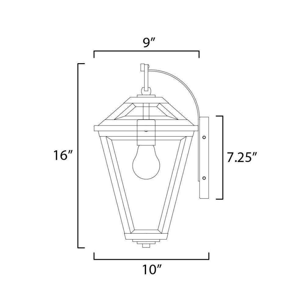 Introducing the Prism 1 Light Outdoor Wall Mount, a stunning addition to your outdoor space. Standing 16 inches tall and 9 inches wide, this transitional wall light from the Prism collection combines style and functionality. Crafted from durable steel, it is designed to withstand the elements while providing a warm glow with its incandescent bulb. Elevate your outdoor decor with this elegant lighting solution that seamlessly blends with various architectural styles.