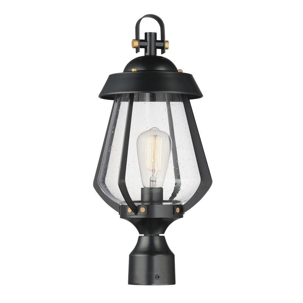A nod to the nautical, the Marin outdoor sconces feature a two-tone frame of Black with Antique Brass details. Within the frame a pear shaped Clear Seeded glass shields a medium base lamp from the elements. Available in three sizes of sconce, two pendant configurations, and a post mount the collection is a full range of offering of a distinctive, designer look.