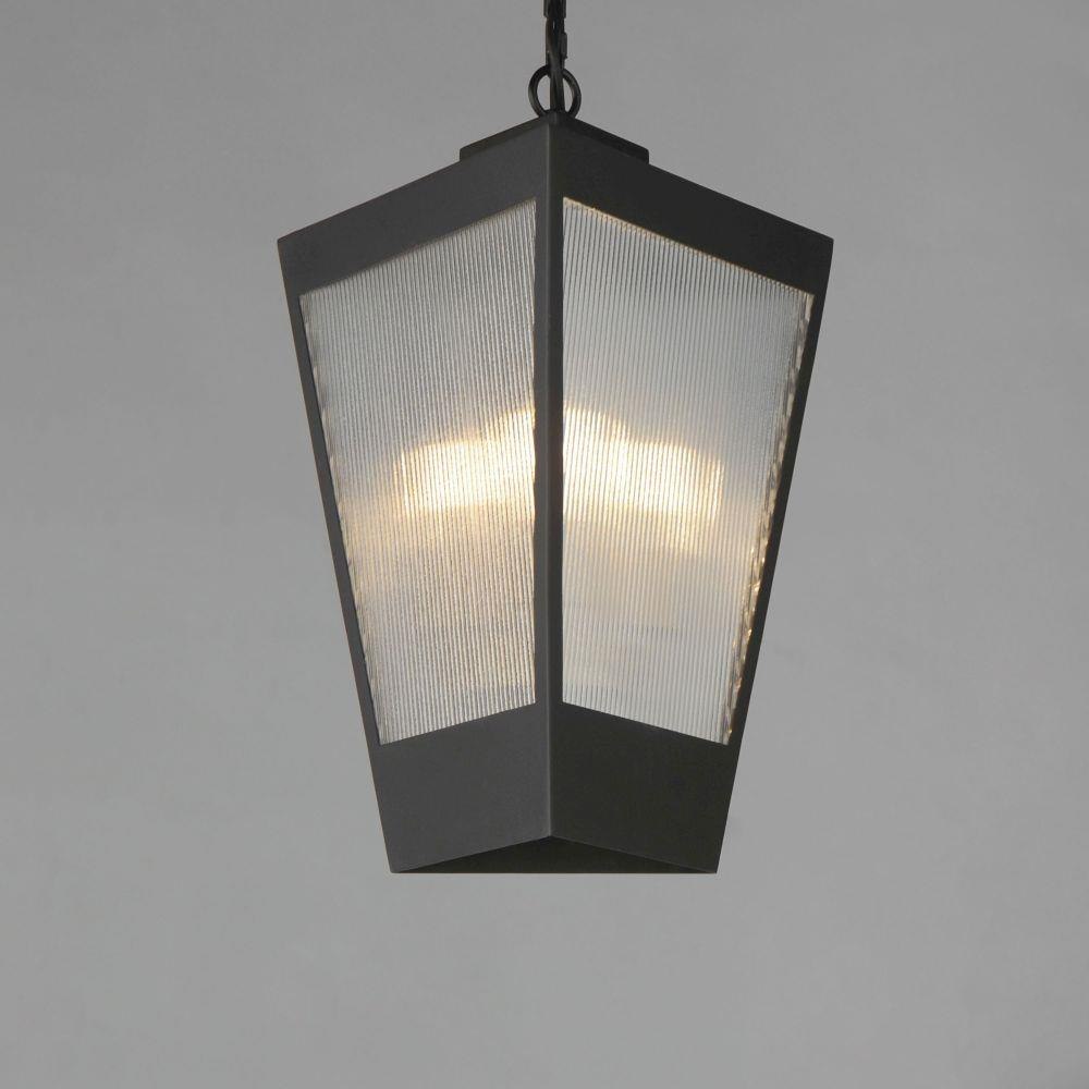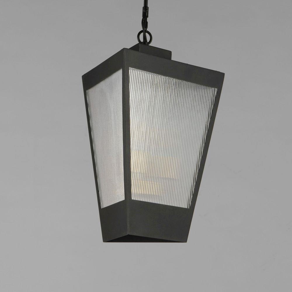 A transitional design suitable for both modern and more traditional applications, this outdoor series of lighting features Clear Ribbed glass that refracts the light source within triangular frames. A Black frame with warm Antique Brass light clusters within, the collection includes 3 sizes of wall sconces and 2 sizes of outdoor rated pendants. With a depth of less than 4 inches, this ADA compliant sconce may also be used in commercial applications.