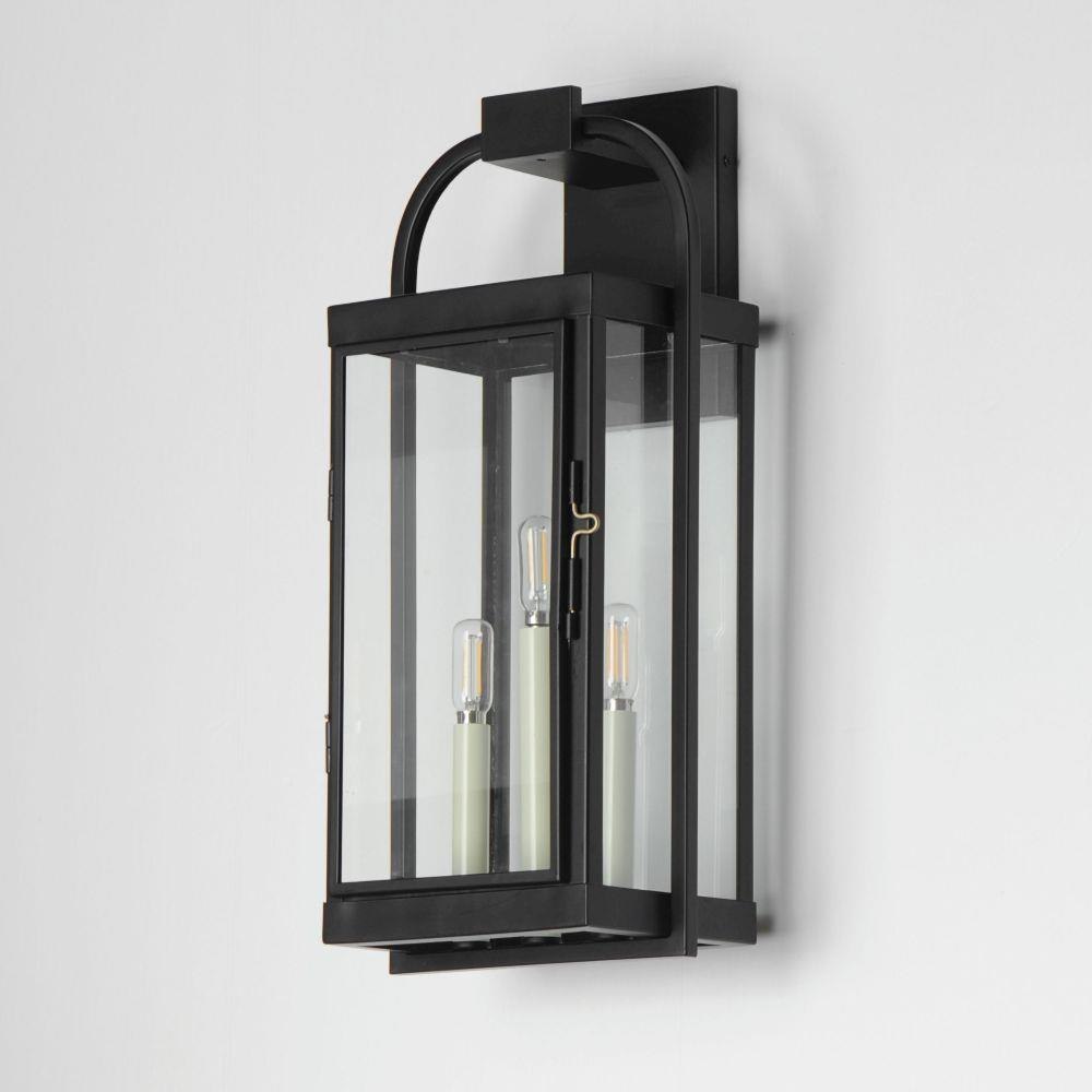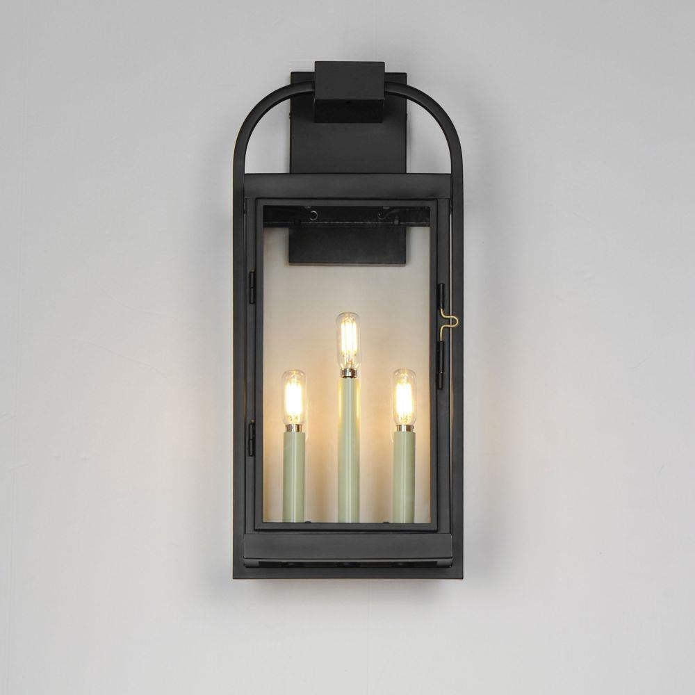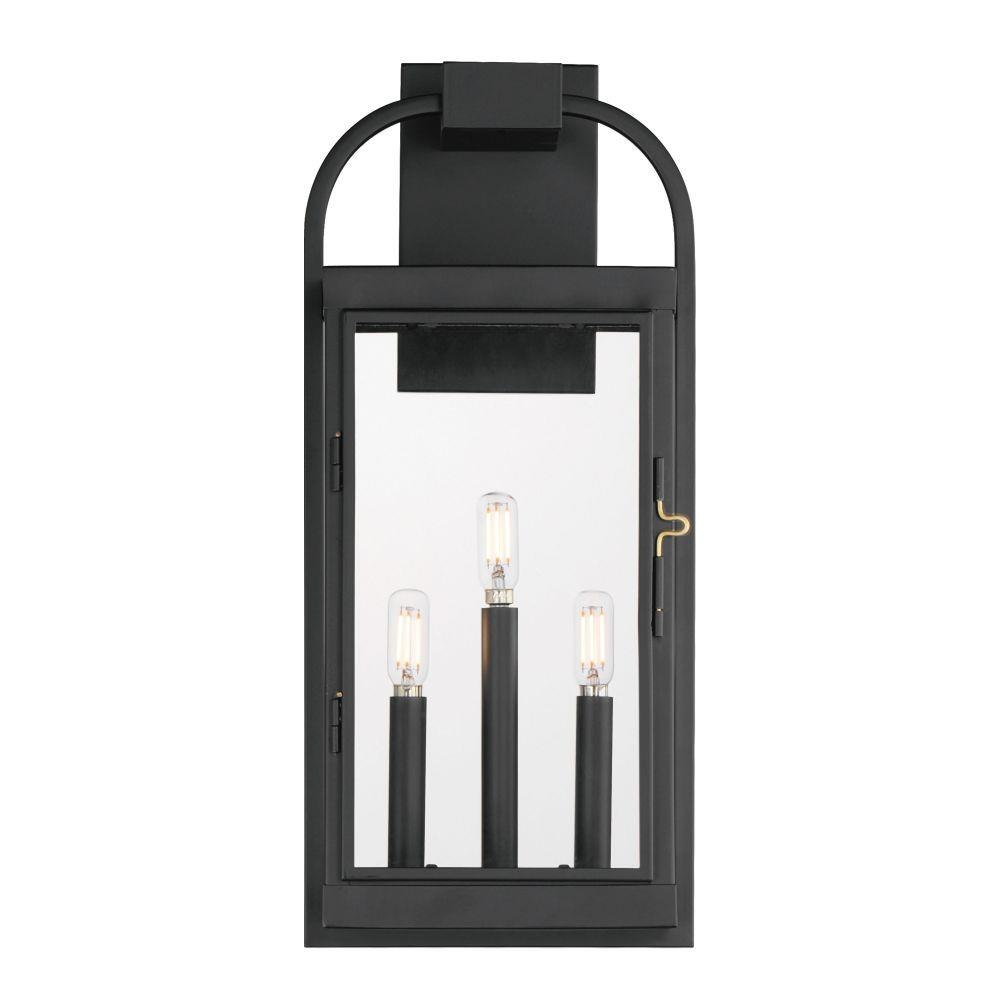 Inspired by classic English lantern design, this collection of outdoor sconces have been streamlined for modern appeal. A convenient, and quaint front door latch allows you to clean and maintain the fixture. Finished in a clean, Matte Black finish with brass hardware and Clear glass panels, two sets of candle sleeves are provided to choose from matching black sleeves or contrasting off-white for a more transitional outlook.