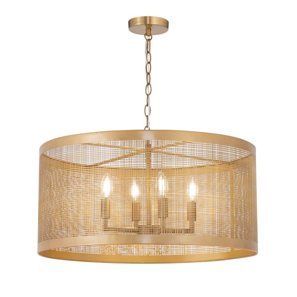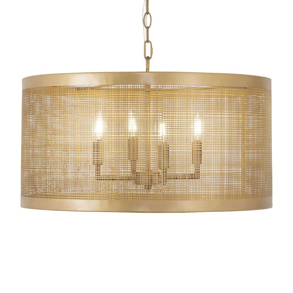 A crosshatching etched pattern on metal shades finished in Gold or Matte Black powder coated finishes. Available in multiple sizes of pendants and matching ADA compliant wall sconce.