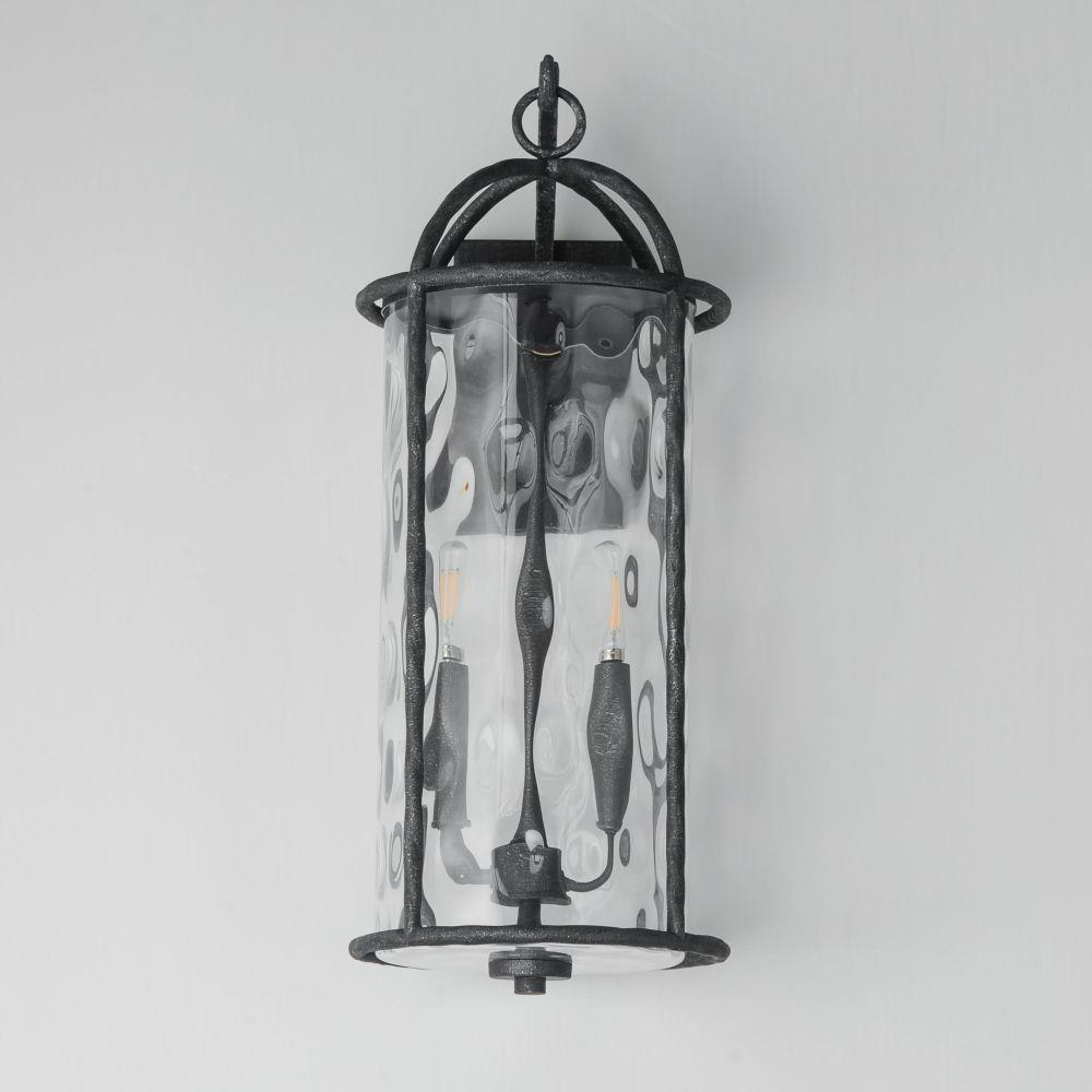 Inspired by classic European lanterns and handcrafted ironwork, the Del Mar collection brings timeless sophistication to exterior spaces. Its airy open-frame silhouette is crafted of hammered iron, elegantly arched with a graceful hook detail that nods to historic gas lamps. Inside the frame, a delicate Water glass cylinder shimmers with texture, diffusing light in a soft, atmospheric glow. Designed for lasting beauty in the elements, each piece is finished in a richly layered Blacksmith finish--a deep near-black tone highlighted by silvery brushstrokes, adding artisanal character to the silhouette. Whether flanking a grand entry or lining a garden path, Del Mar offers a refined approach to outdoor lighting with enduring presence.