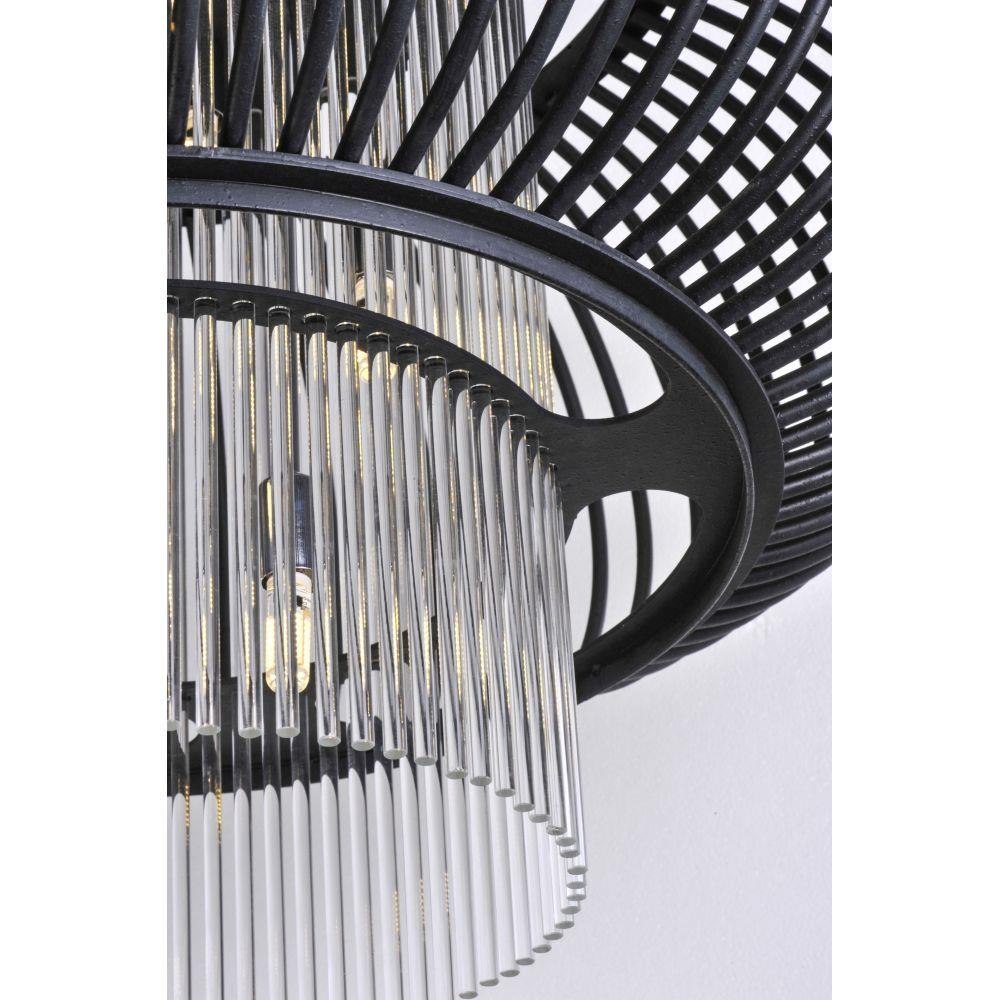 Heavy weight steel cages support a circular band of individual glass rods which run beyond the entire height of the fixtures. A spiraling cluster of G9 LED bulbs refract light in an unusual pattern creating a lighting effect sure to create attention. You can chose between the rounds style in Anthracite and Clear rods or the more transitional faceted shape in Oil Rubbed Bronze with Cognac rods.