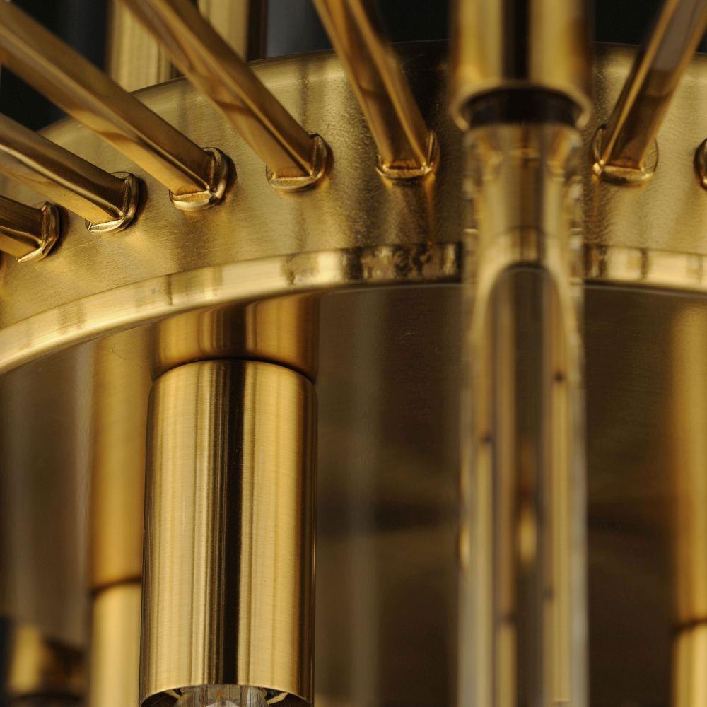 The composition of Clear glass rods are elegantly supported by thin radial arms of staggered lengths to create an iridescent motif that is truly Divine. Finished in Polished Nickel or Heritage Brass, the simplicity of this design delivers a crisp lighting fixture that works in a multitude of interior aesthetics from contemporary to traditional. Available in pendant, chandelier, and wall sconce configurations.