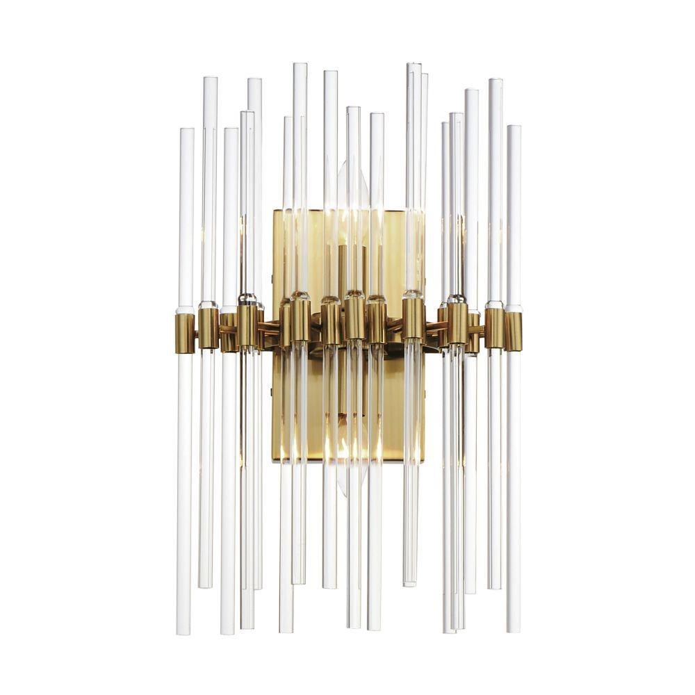 The composition of Clear glass rods are elegantly supported by thin radial arms of staggered lengths to create an iridescent motif that is truly Divine. Finished in Polished Nickel or Heritage Brass, the simplicity of this design delivers a crisp lighting fixture that works in a multitude of interior aesthetics from contemporary to traditional. Available in pendant, chandelier, and wall sconce configurations.
