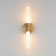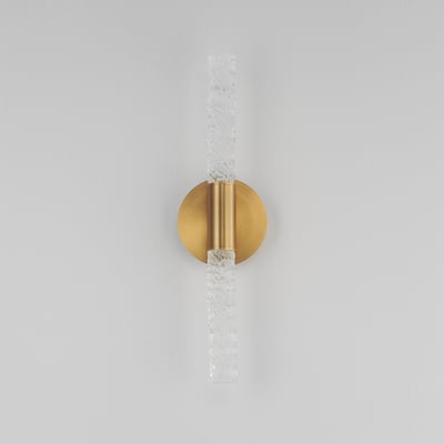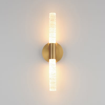 The Duchess Double Wall Sconce enhances any space with its elegant fusion of traditional brass craftsmanship and modern Iceberg glass. This sophisticated lighting solution features integrated LED modules that provide a warm, inviting glow.