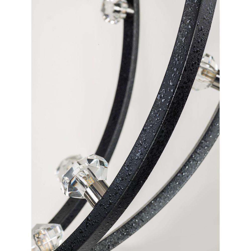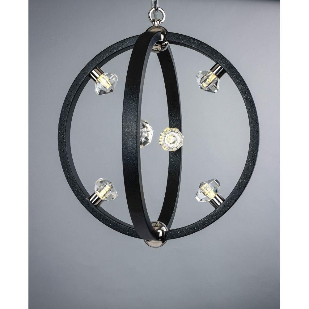 Bands of steel finished in Polished Nickle or Textured Black with Polished Nickle accents, create spherical forms of lighting. These spheres are graced with Beveled Crystal fonts which conceal dimmable LED bulbs. A perfect blend of grace, beauty and energy efficiency.