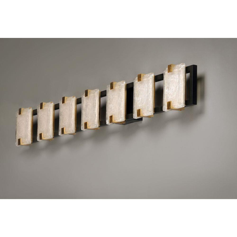 Piastra style glass diffuses integrated LED to shimmer radiantly. Suspended on a Black frame with Gold Leaf accents, this perfect blend of contemporary and traditional design adds glamour to a broad spectrum of design aesthetics.