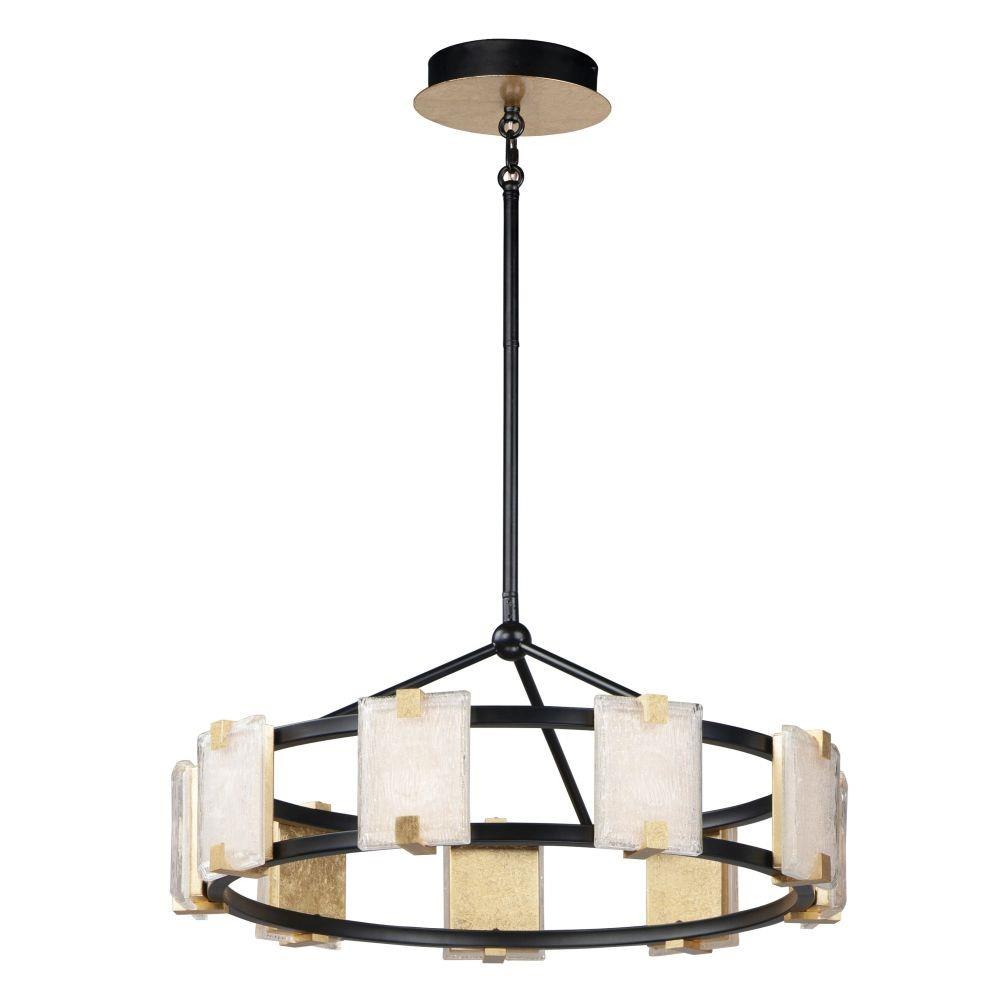 Piastra style glass diffuses integrated LED to shimmer radiantly. Suspended on a Black frame with Gold Leaf accents, this perfect blend of contemporary and traditional design adds glamour to a broad spectrum of design aesthetics.