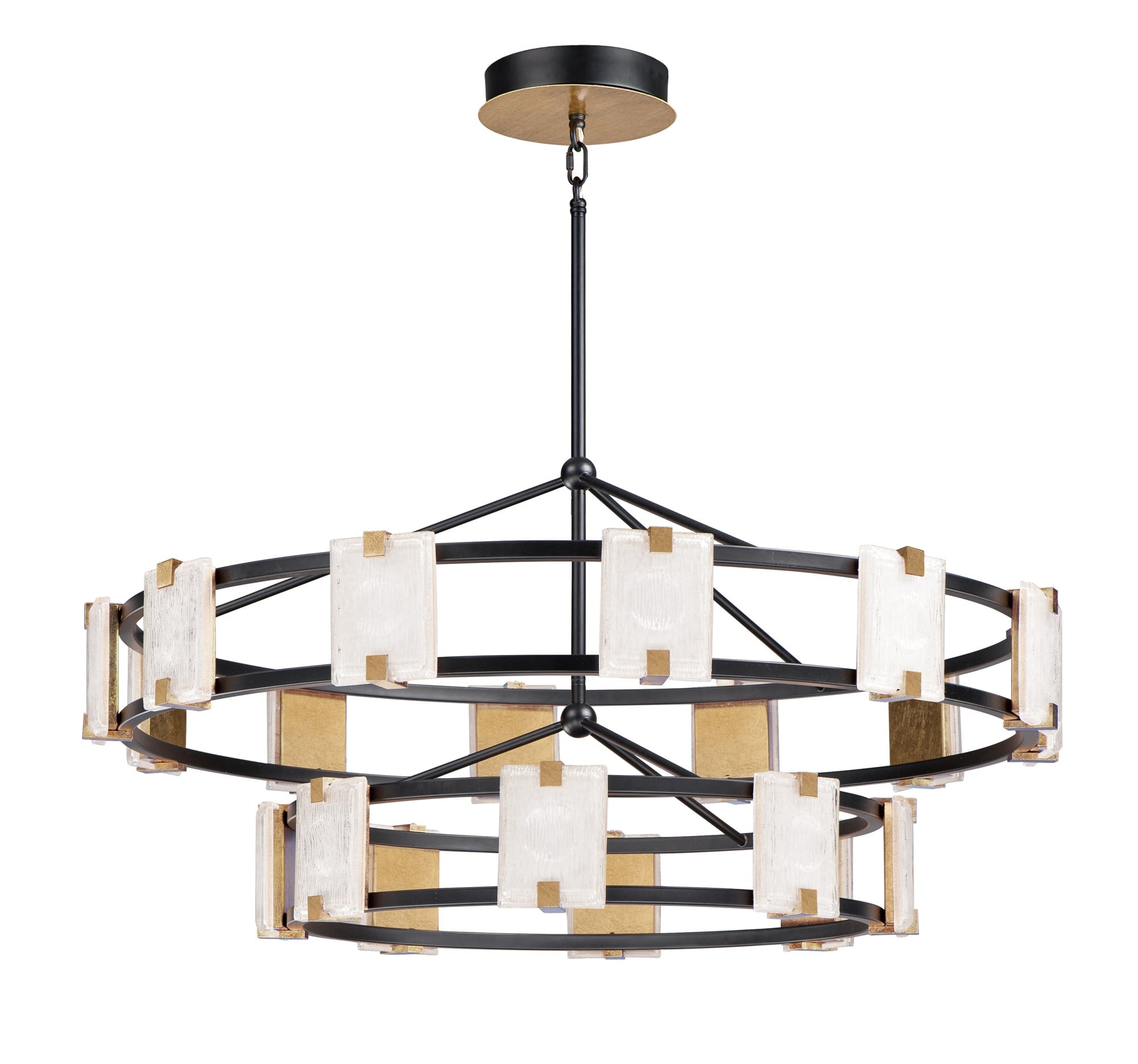The Radiant Two-Tier Chandelier by Maxim Lighting is a stunning addition to any space, combining contemporary and traditional design elements for a glamorous touch.