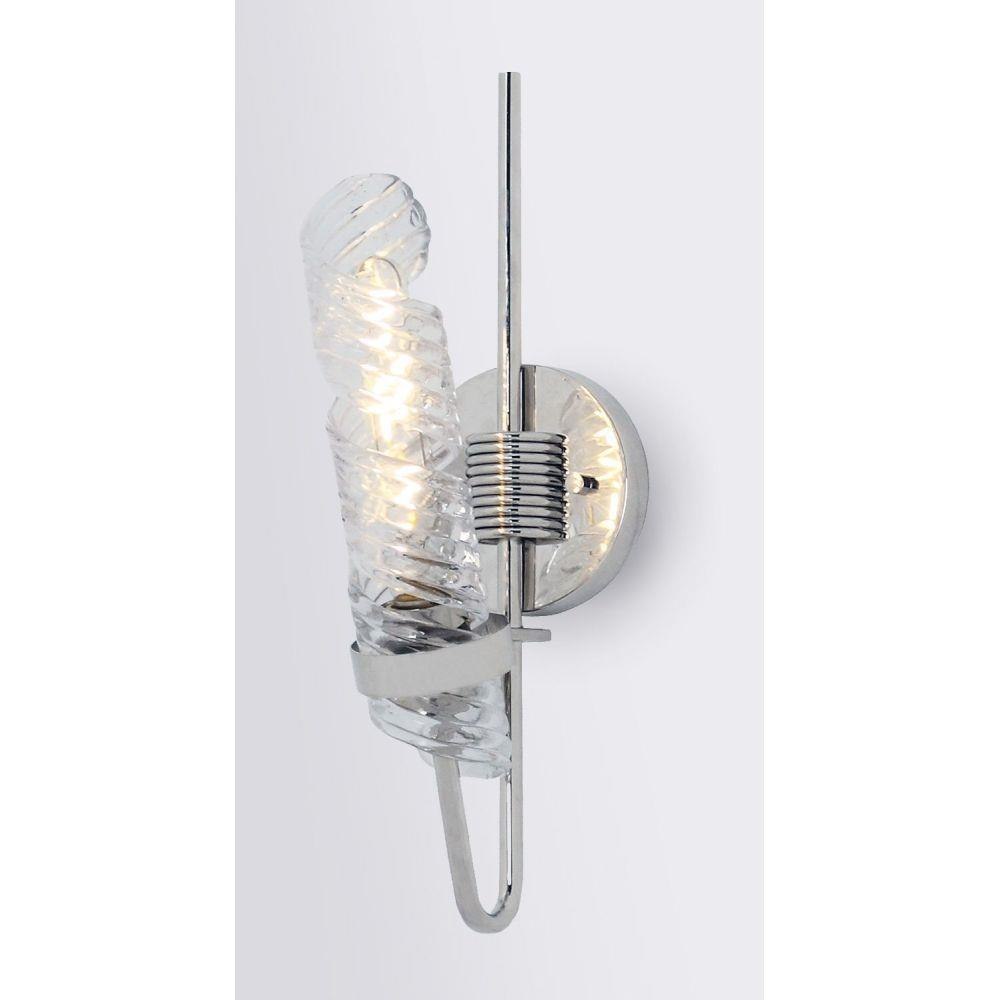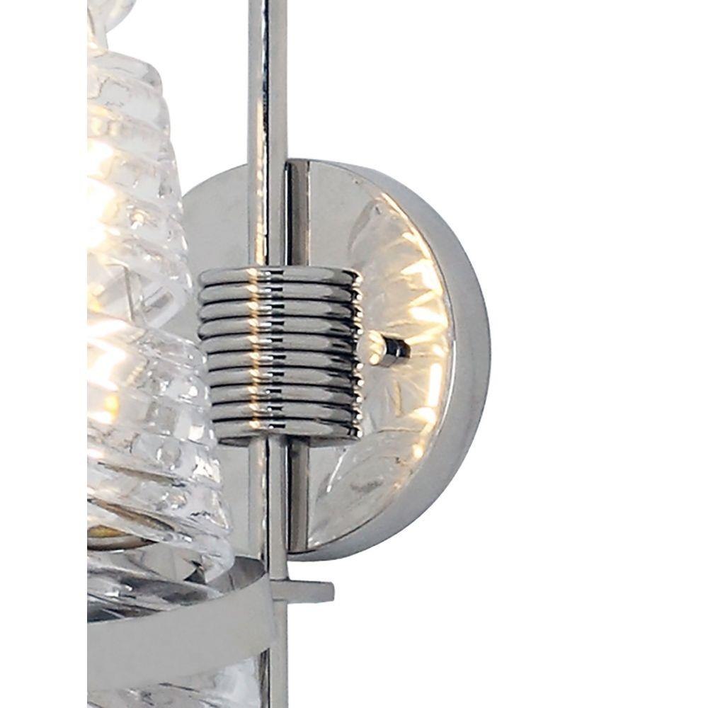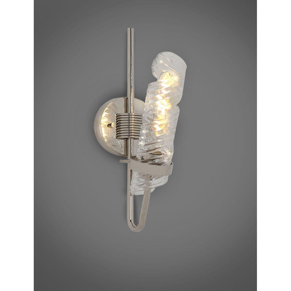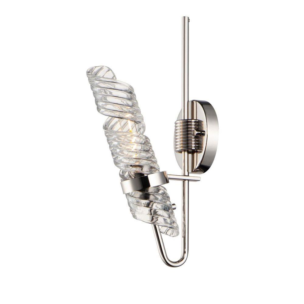 The highlight of this collection is the hand formed Clear spiral glass shades which are nested in a unique frame of Polished Nickel. Inspired by the