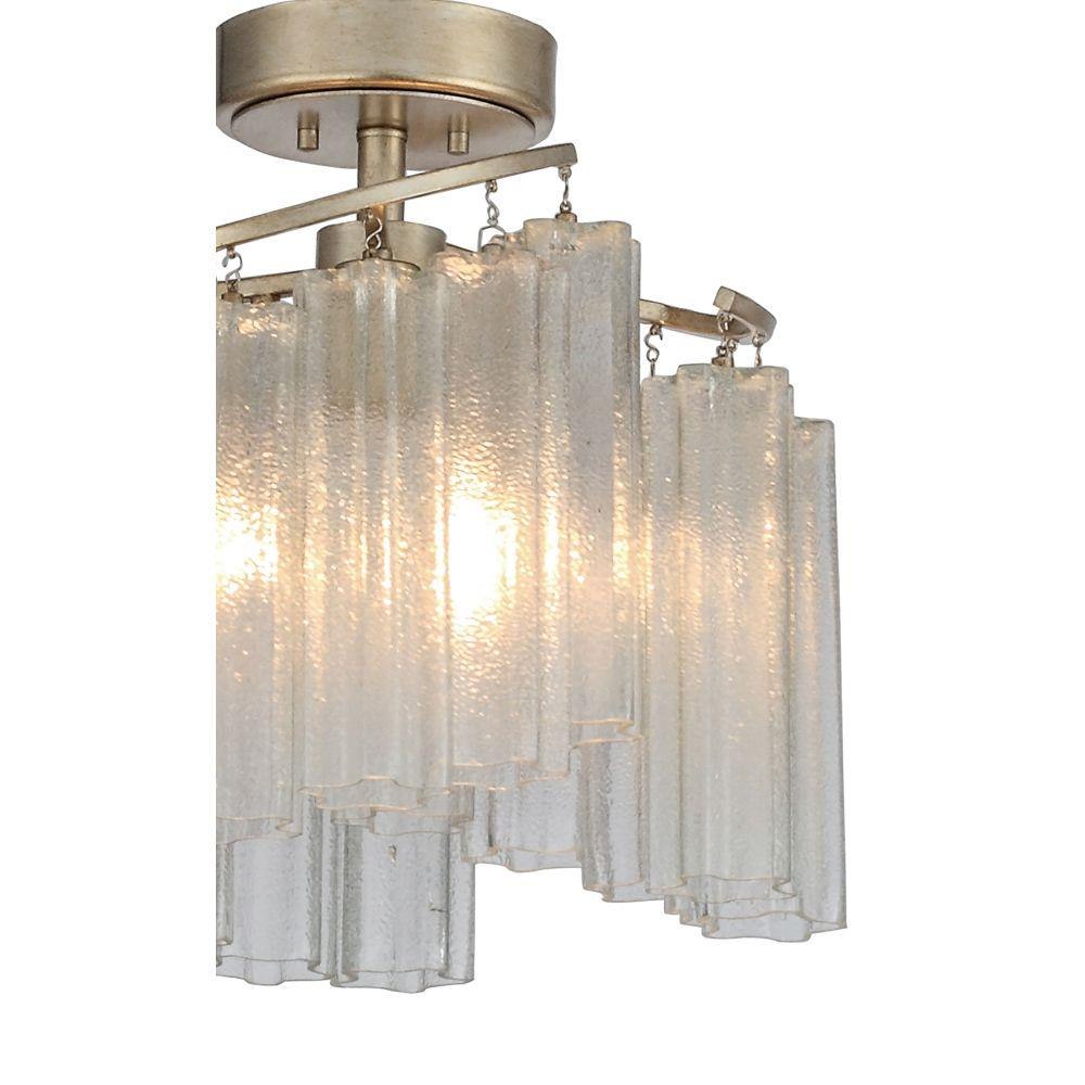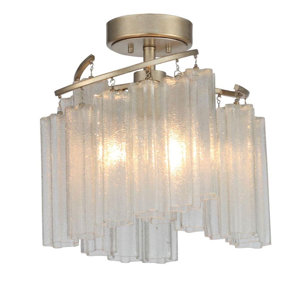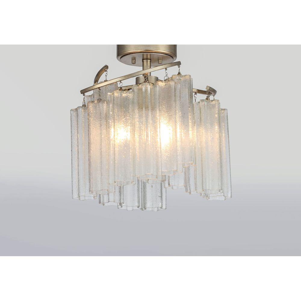 Cascading Waterfall glass shades are suspended from a frame finished in our popular Golden Silver. This elegant collection spans design genres from contemporary to traditional which gives it universal appeal.
