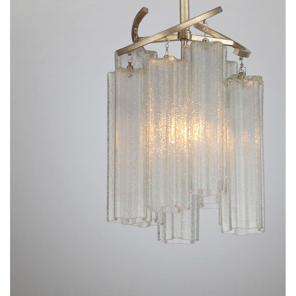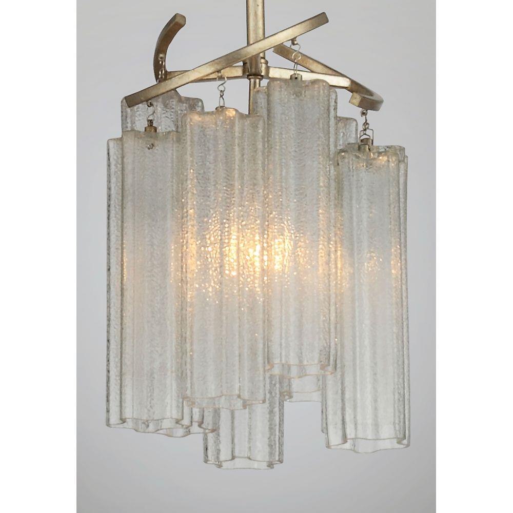 Cascading Waterfall glass shades are suspended from a frame finished in our popular Golden Silver. This elegant collection spans design genres from contemporary to traditional which gives it universal appeal.