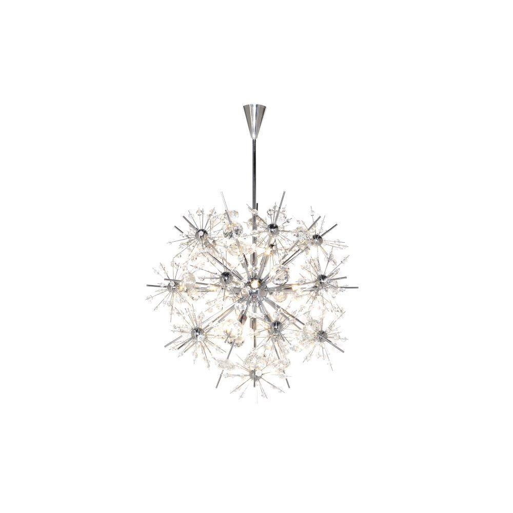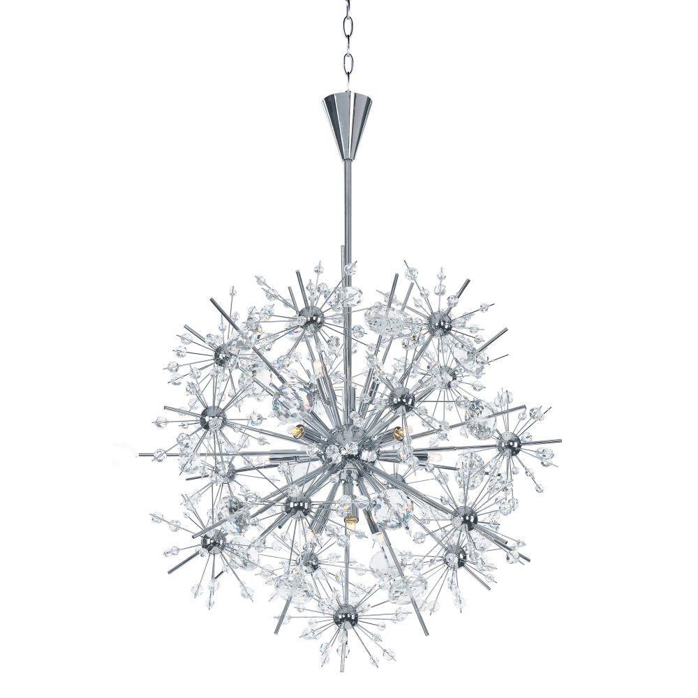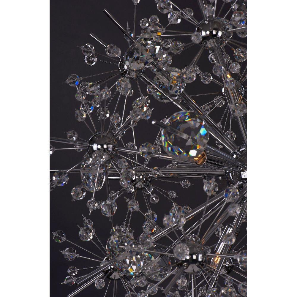 Spectacular display of Beveled Crystal beads of various sizes which are mounted on sculptures Polished Chrome metal formations which will sure to be the focal point of your room. The high power Xenon bulbs add sparkle to the crystal while producing a natural white light.