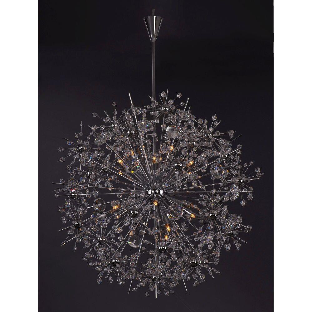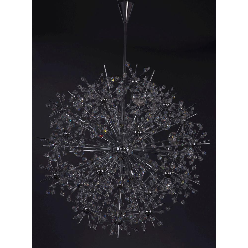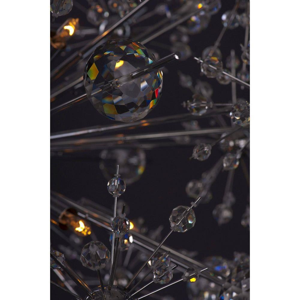 Spectacular display of Beveled Crystal beads of various sizes which are mounted on sculptures Polished Chrome metal formations which will sure to be the focal point of your room. The high power Xenon bulbs add sparkle to the crystal while producing a natural white light.